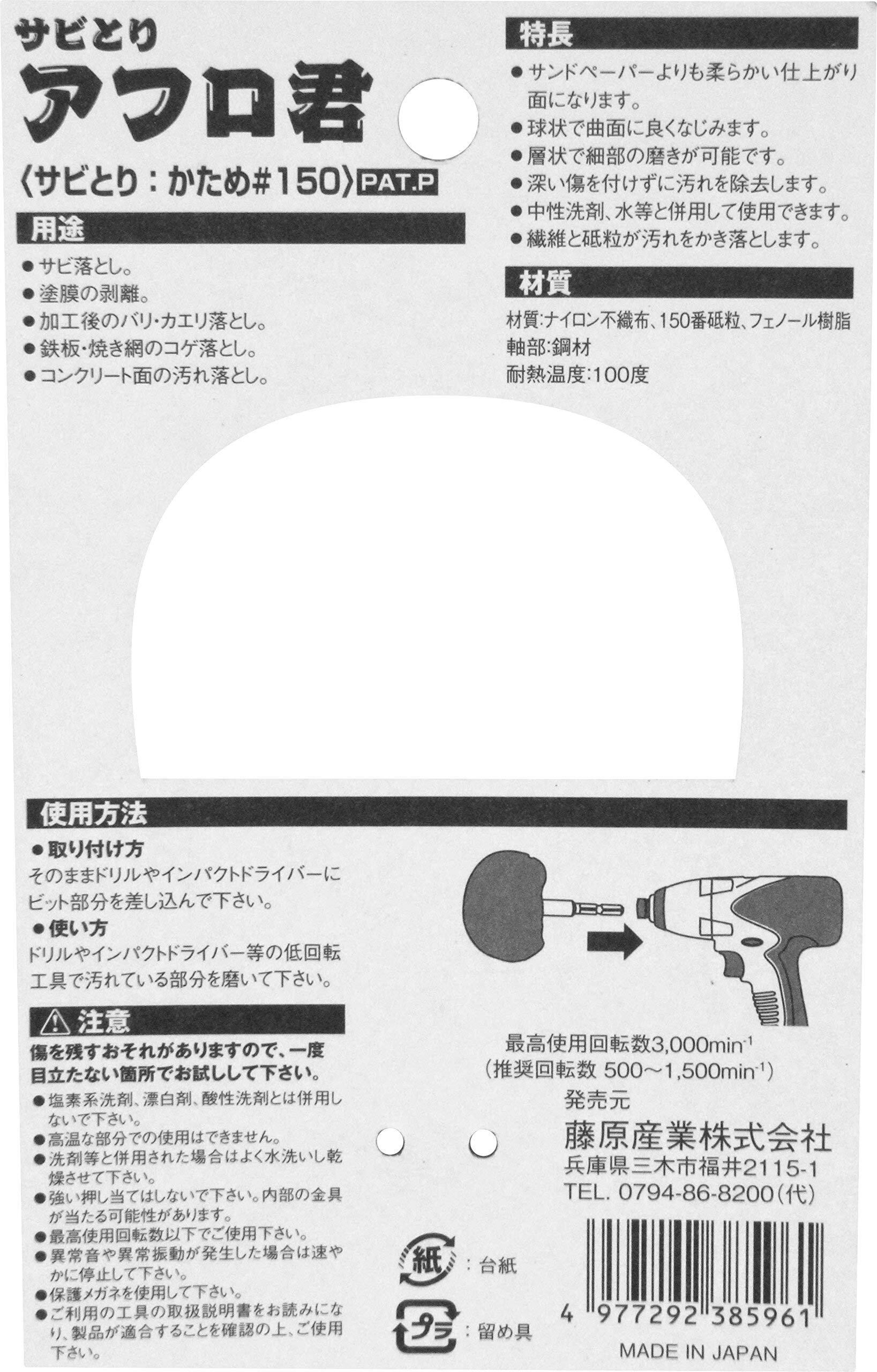 【在庫処分】SK11(エスケー11) サビ取りアフロ君 六角軸 電動ドリル/インパクトドライバー用 かため#150