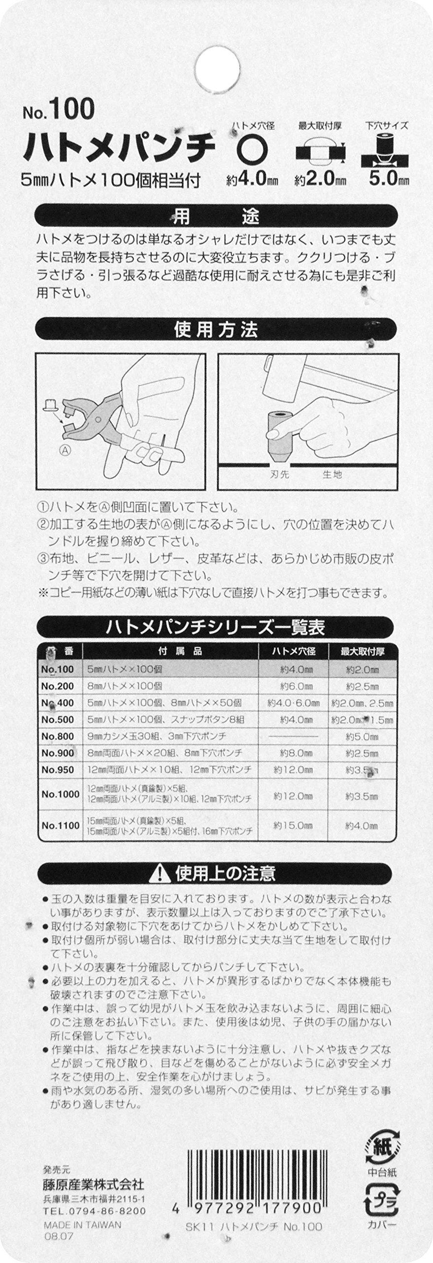 SK11(エスケー11) ハトメパンチ 普及型 ハトメ穴径約4.0mm No.100