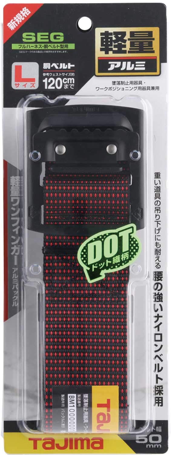 タジマ 新規格安全帯 胴ベルトLサイズ ドット赤 BAL145-DRE 長さ145cm 革手袋でも操作が簡単な軽量アルミフィンガーバックル 腰の強い特厚ナイロンベルト
