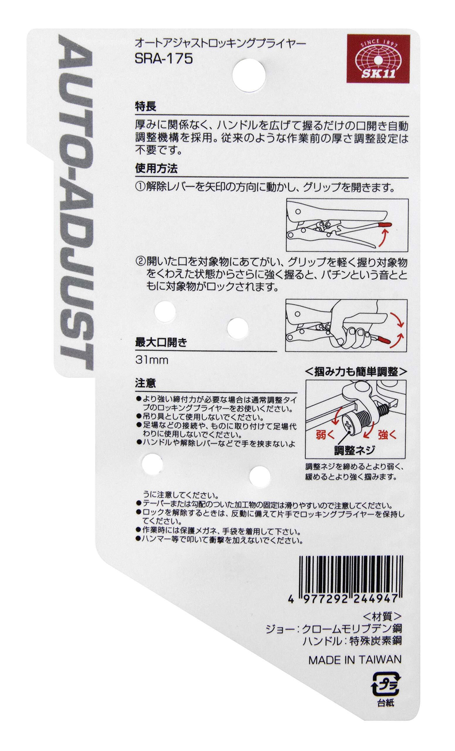 SK11(エスケー11) オートアジャストロッキングプライヤー 172mm SRA-175 最大口開き31mm