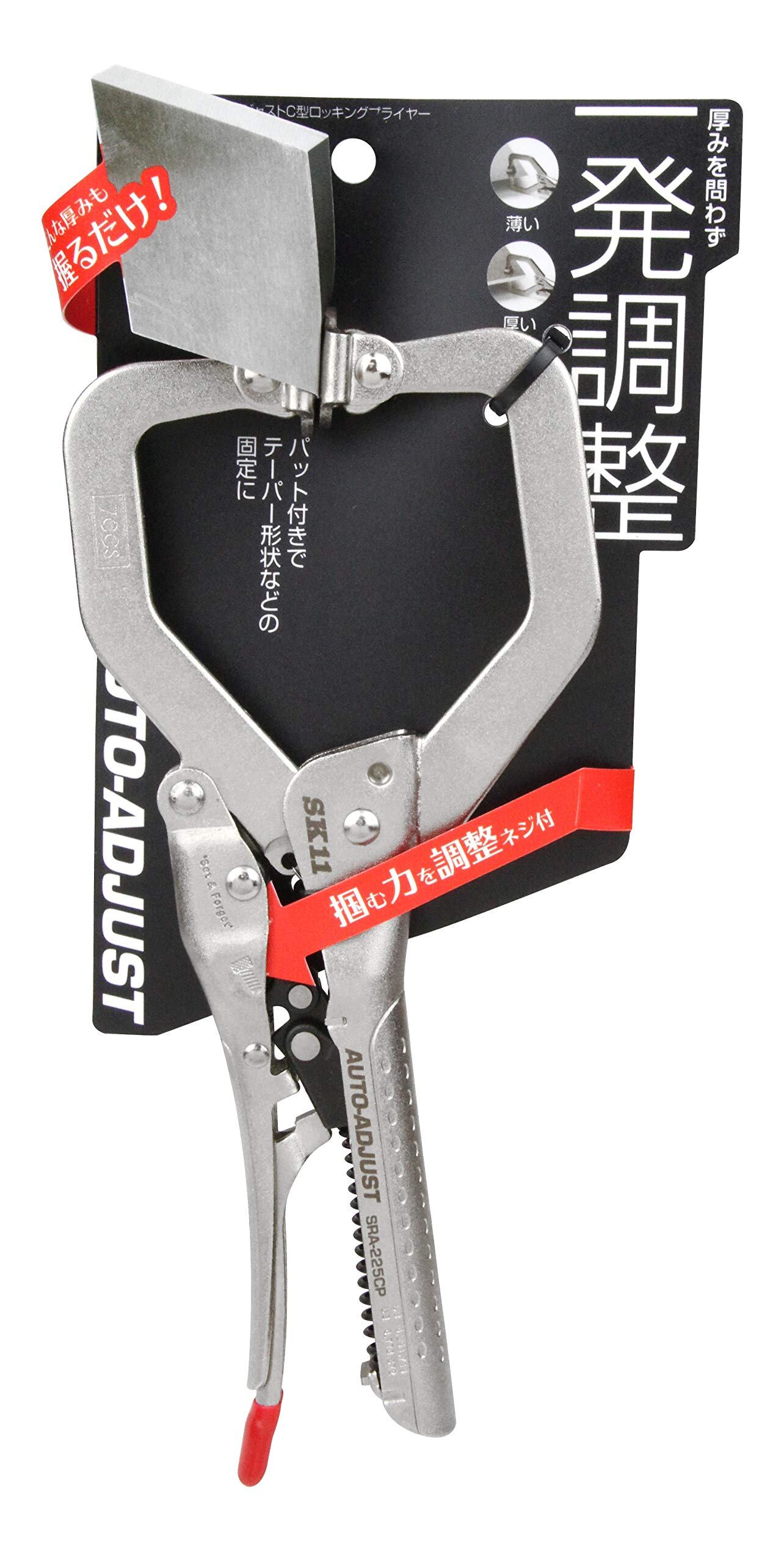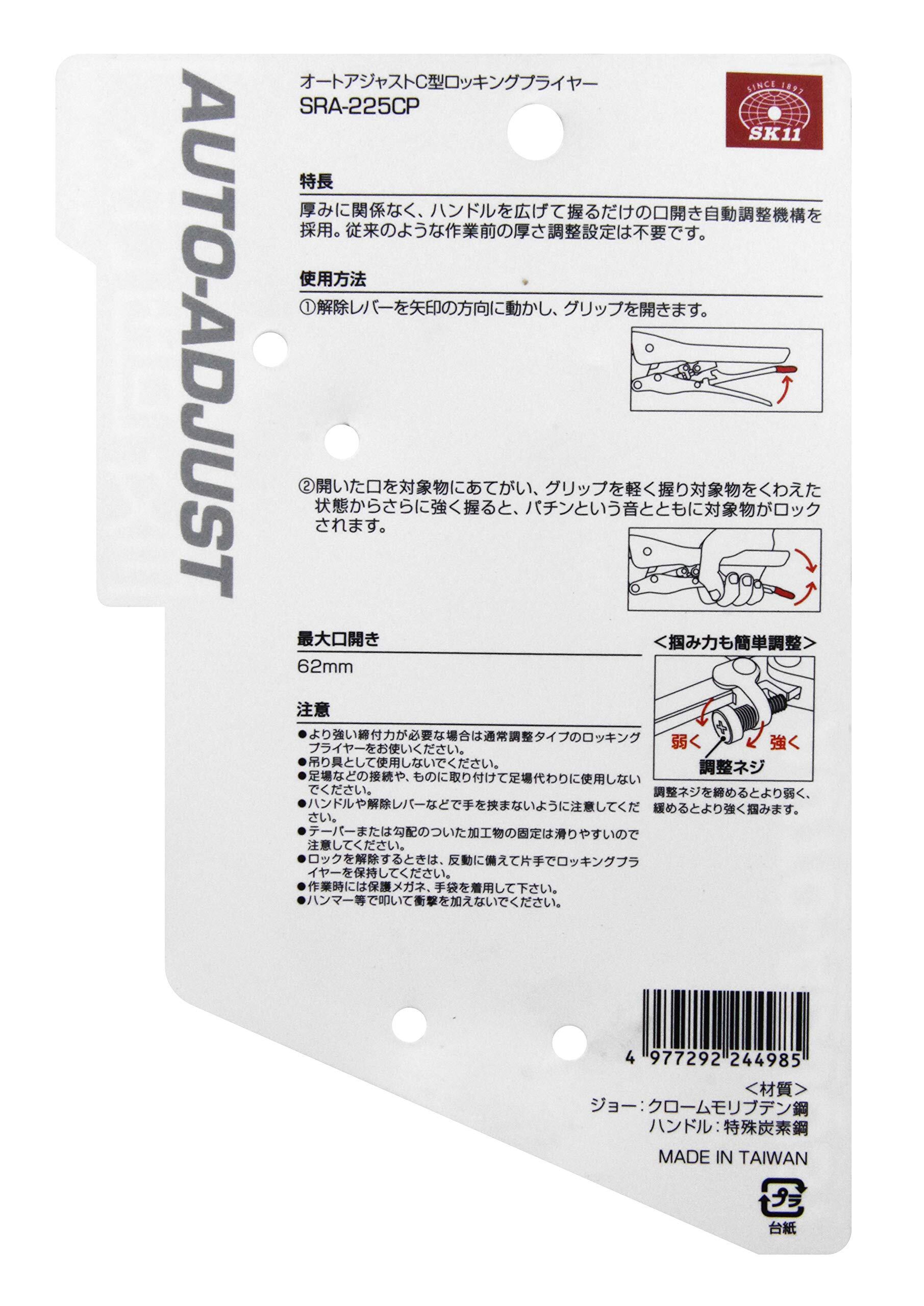 SK11(エスケー11) オートアジャストC型ロッキングプライヤー 最大口開き62mm ふところ深さ57mm SRA-225CP 228mm パット付き