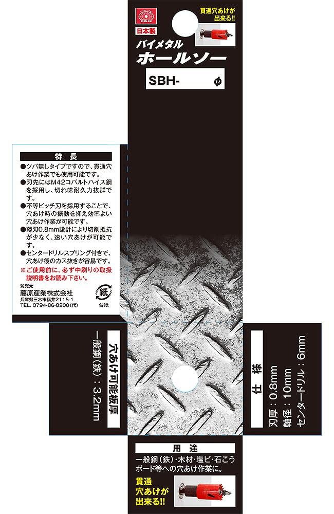 薄刃0.8mm設計により切削抵抗が少なく、速い穴あけが可能。