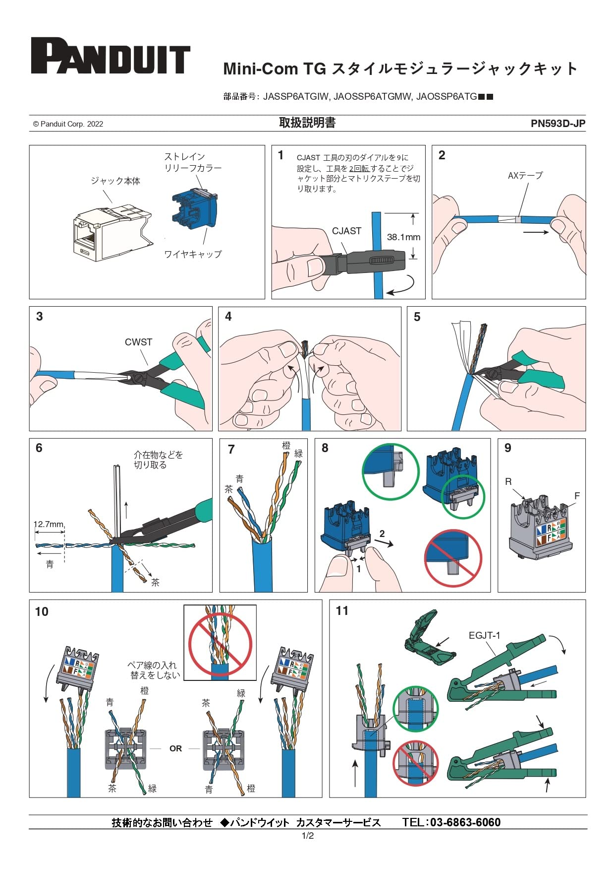 パンドウイット Cat6A JISプレート用ジャックキット 白 JAOSSP6ATGMW