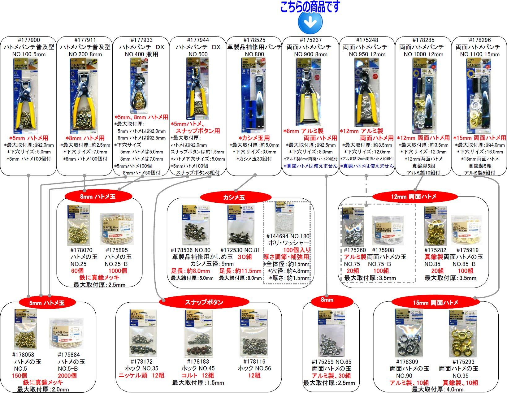 ハトメと裏座の数が合わない事がありますが、表示数量以上は入っておりますのでご了承ください