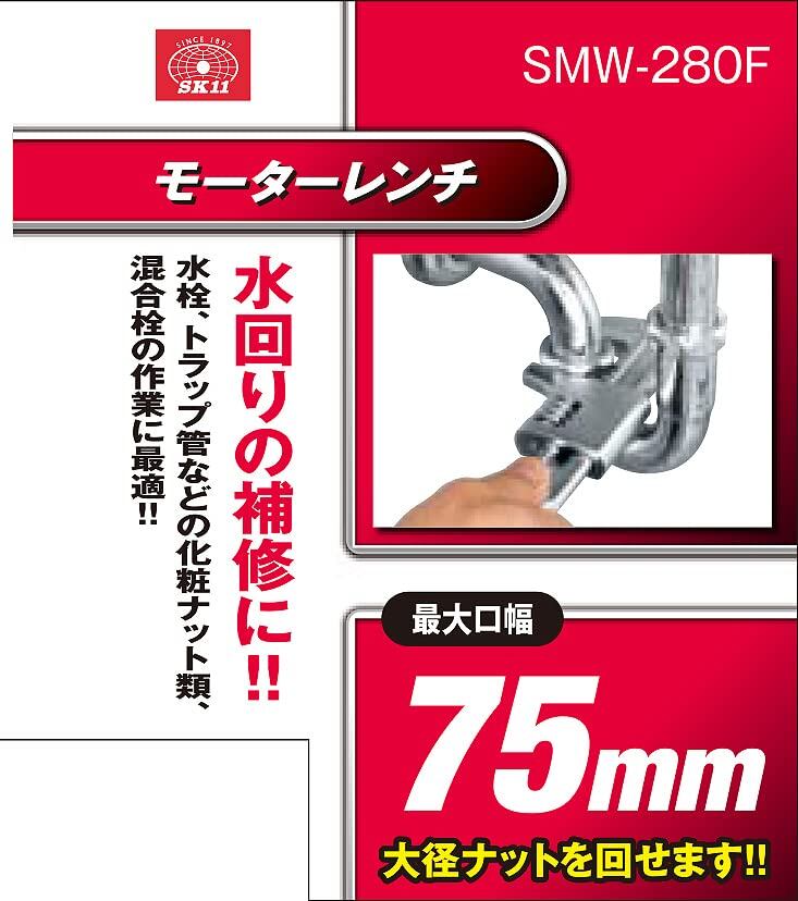SK11(エスケー11) モーターレンチ 水回りの補修用 最大口開き幅:75mm SMW-280F