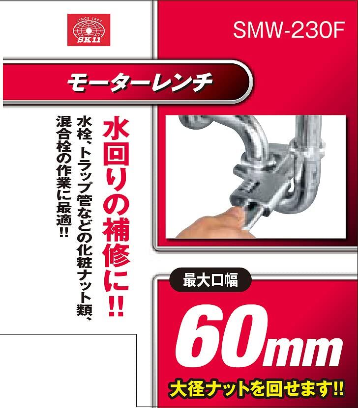 SK11(エスケー11) モーターレンチ 水回りの補修用 最大口開き幅:60mm SMW-230F
