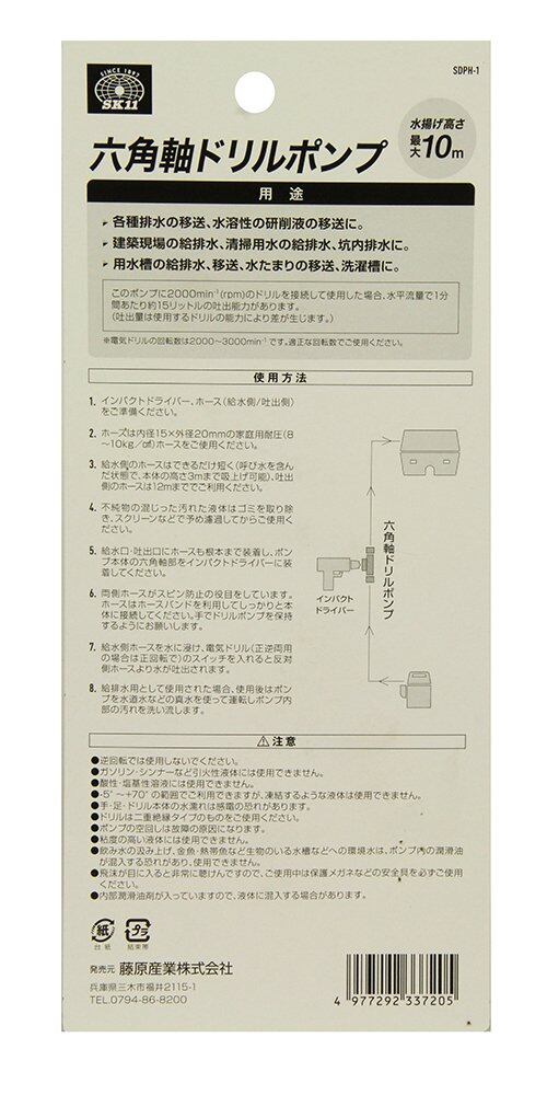 SK11(エスケー11) 六角軸 電気ドリル用ポンプ 吐出量:15L/min SDPH-1
