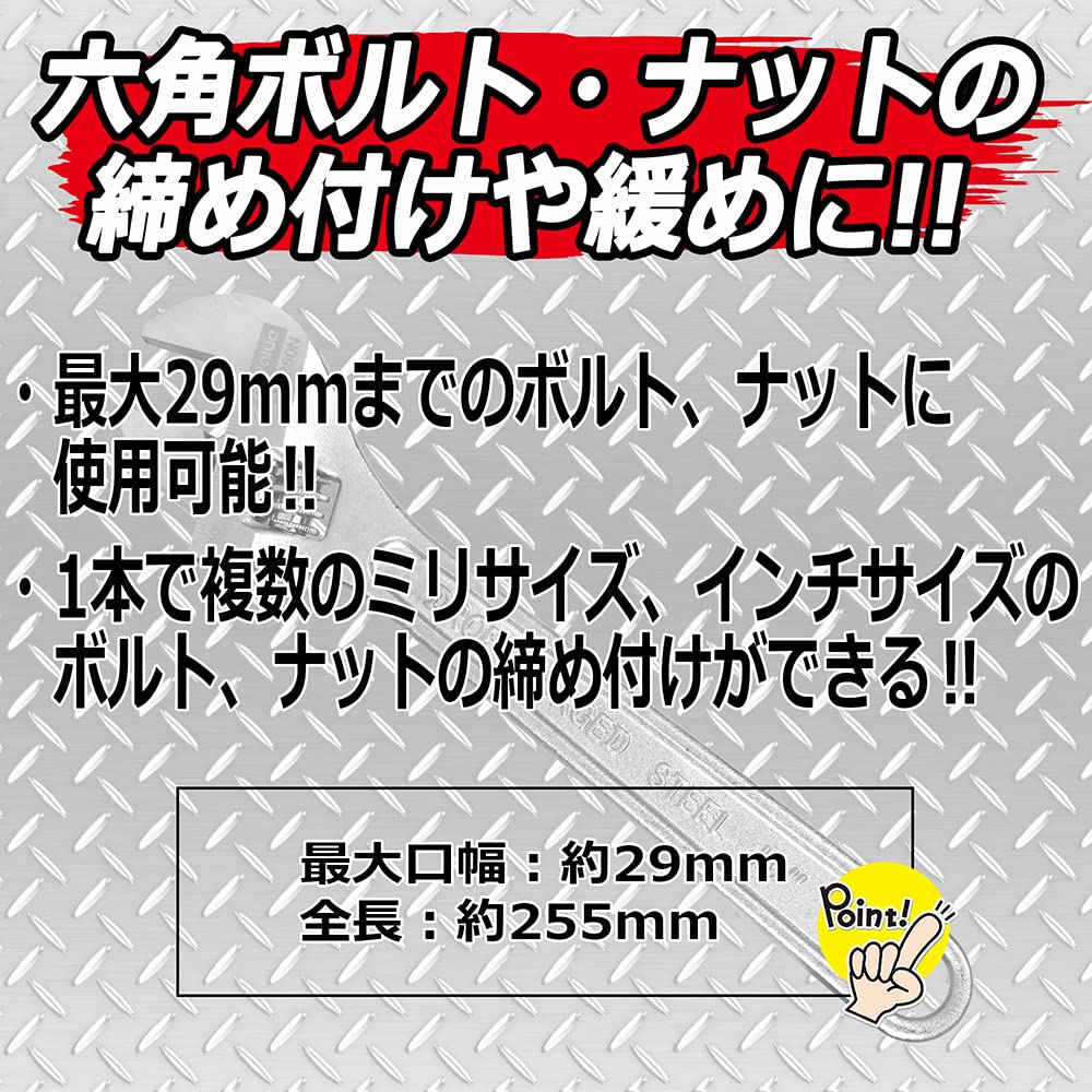 【限定セール】イーバリュー(E-Value) モンキレンチ 全長250mm 口幅29mm EM-250N