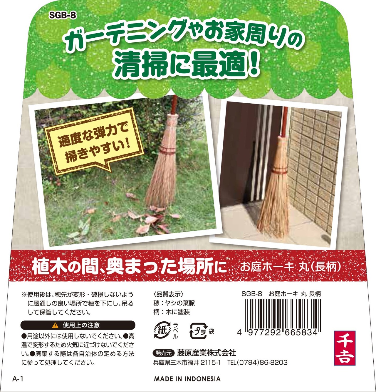 千吉 お庭ホーキ 植木の間 奥まった場所に 全長約1265mm 掃幅約135mm 丸型 長柄 SGB-8