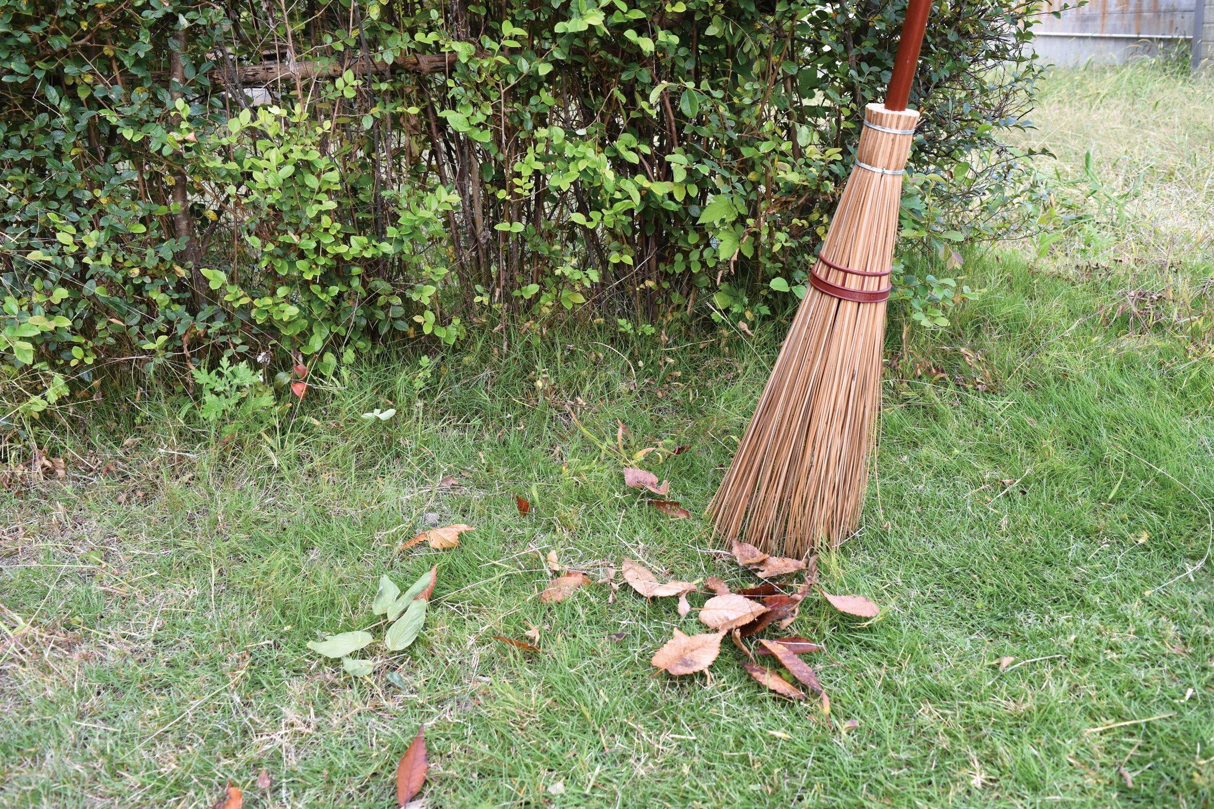 ・ヤシの葉脈から作った、太くて弾力のある穂先で、落ち葉や小石など、大きなゴミをしっかり掃きだす