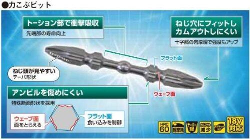 トーション&力こぶ部が衝撃を分散し、ねじ頭や刃先の破損が減少!