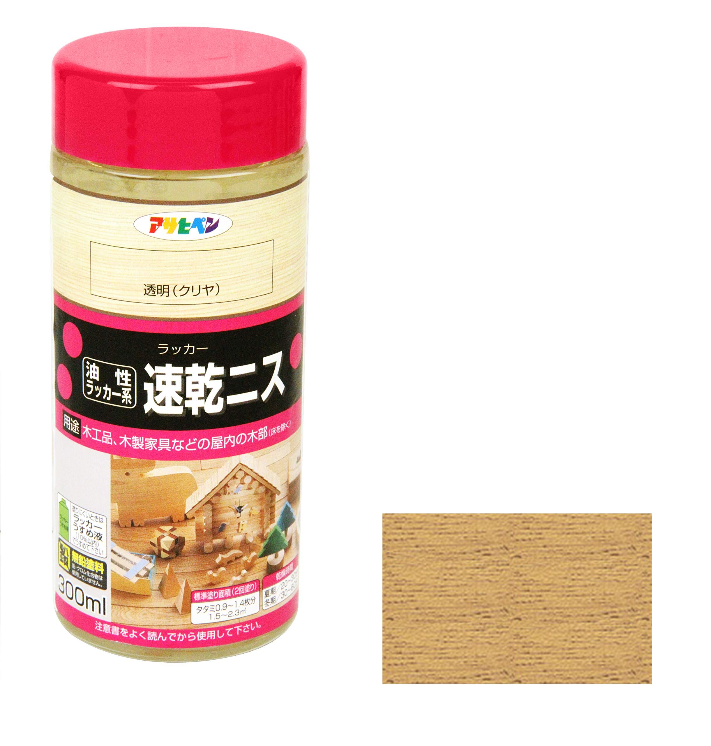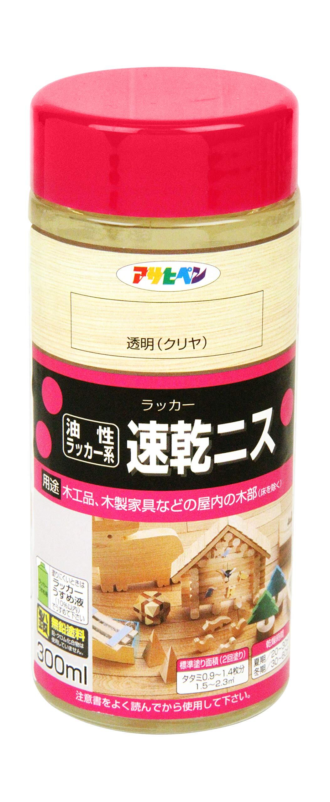 アサヒペン 塗料 ペンキ 速乾ニス 300ml 透明 クリヤ ラッカー塗料 木部用 ツヤあり 速乾 日本製