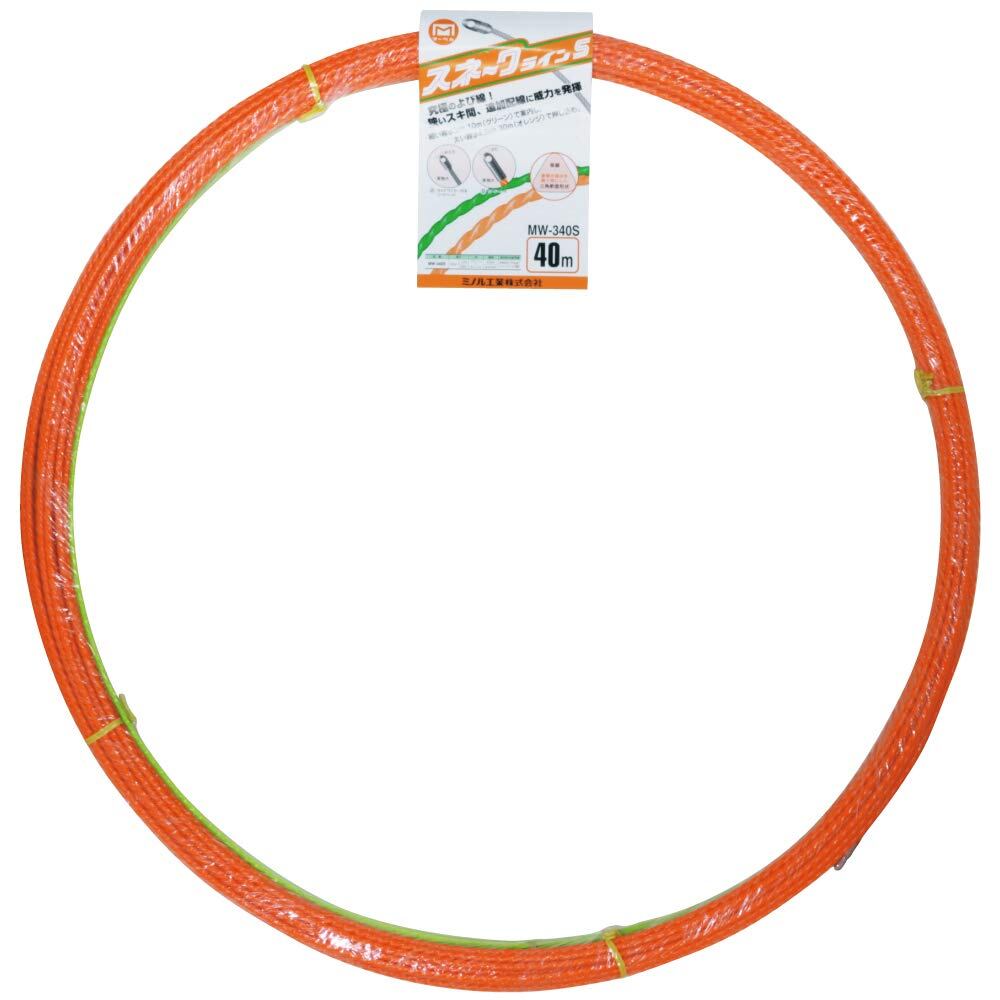 細い線直径3mm 10m(グリーン)で案内し、太い線直径4.5mm 30m(オレンジ)で押し込む。狭いスキ間、追加配線に威力を発揮。究極のよび線。