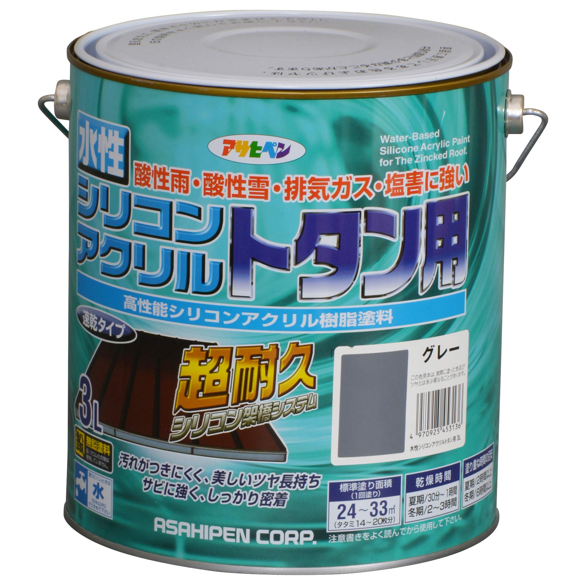 アサヒペン 塗料 ペンキ 水性シリコンアクリルトタン用 3L グレー 水性 トタン 屋根塗料 ツヤあり 超耐久 1回塗り 速乾 紫外線劣化防止剤配合 日本製