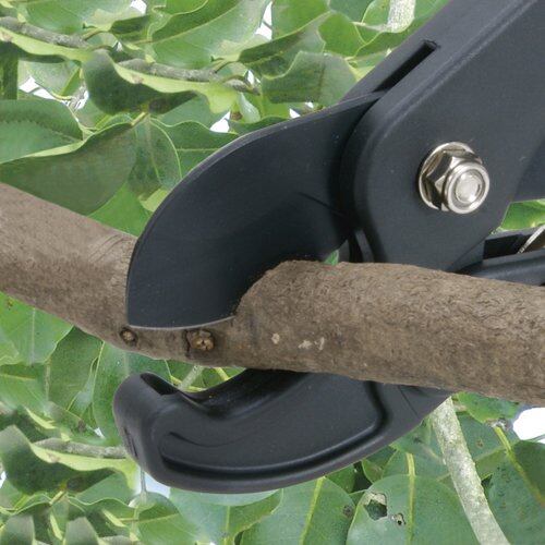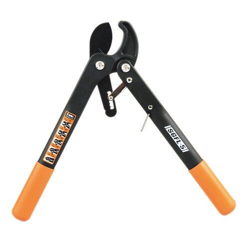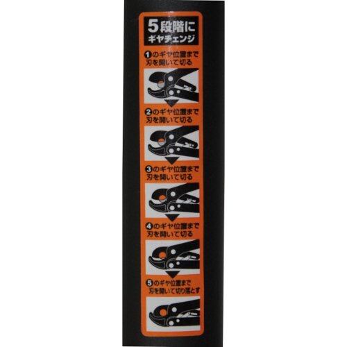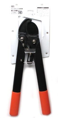 【特長】●庭木の剪定作業用。●ラチェット機能式で、従来の約1/3の力で楽々切断ができます。●錆び、ヤニ、汚れに強いフッ素コート加工刃です。●軽量、しかも丈夫なナイロングラスファイバー製ハンドルを採用しています。●気軽に使える小型軽量タイプの太枝切鋏です。