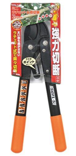 千吉 太枝切鋏 ミニ ラチェット式 生木30mmまで 410mm/フッ素加工刃