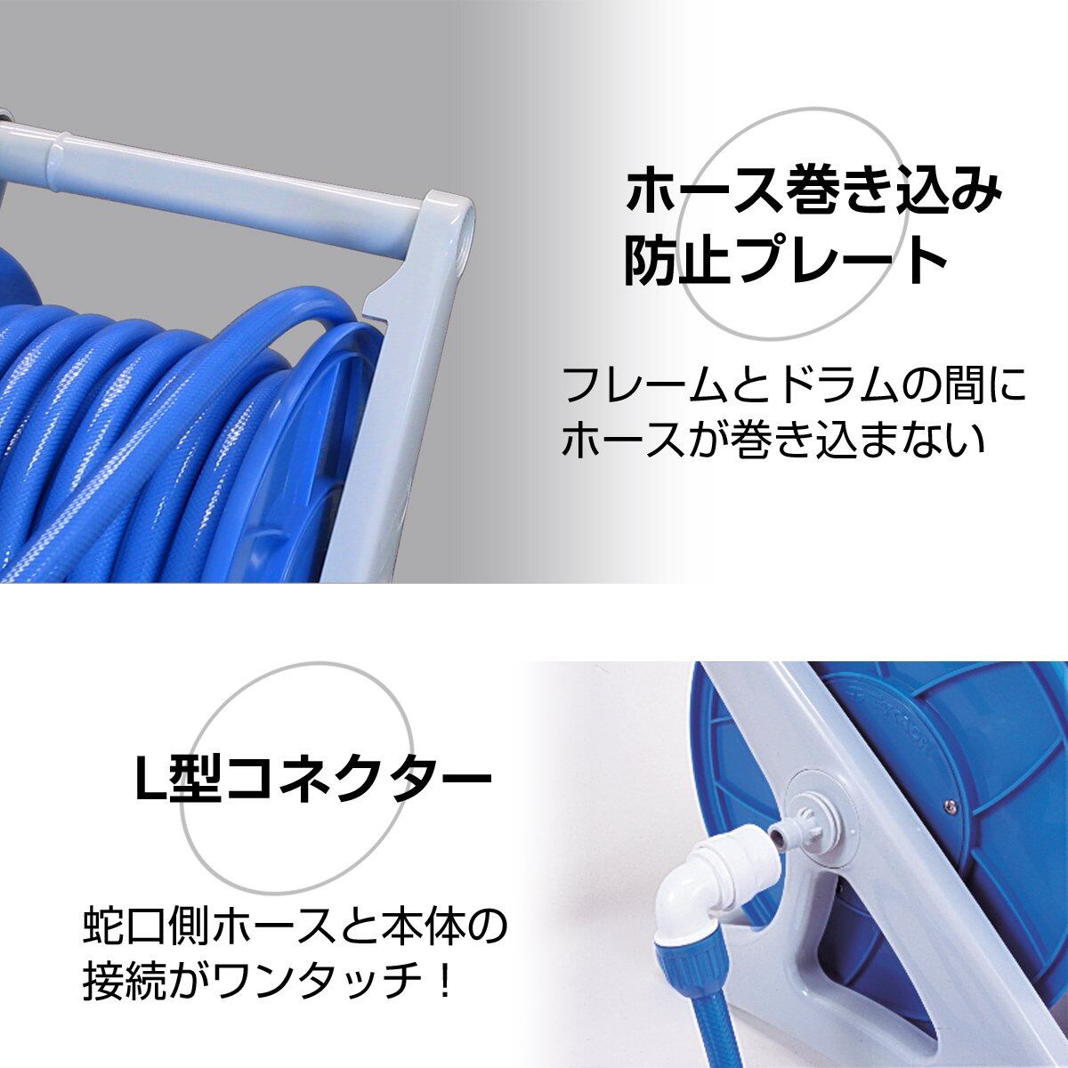 適合ホース(mm)内径×外径:15×20~21、18×23~26 幅(mm):372 奥行(mm):420 高さ(mm):395 ホース内径(mm):15~18 使用圧力(MPa):0.7 ホース内径(mm):15~18 使用圧力(MPa):0.7 巻取りホース目安内径15:50m、 巻取りホース目安内径18:30m