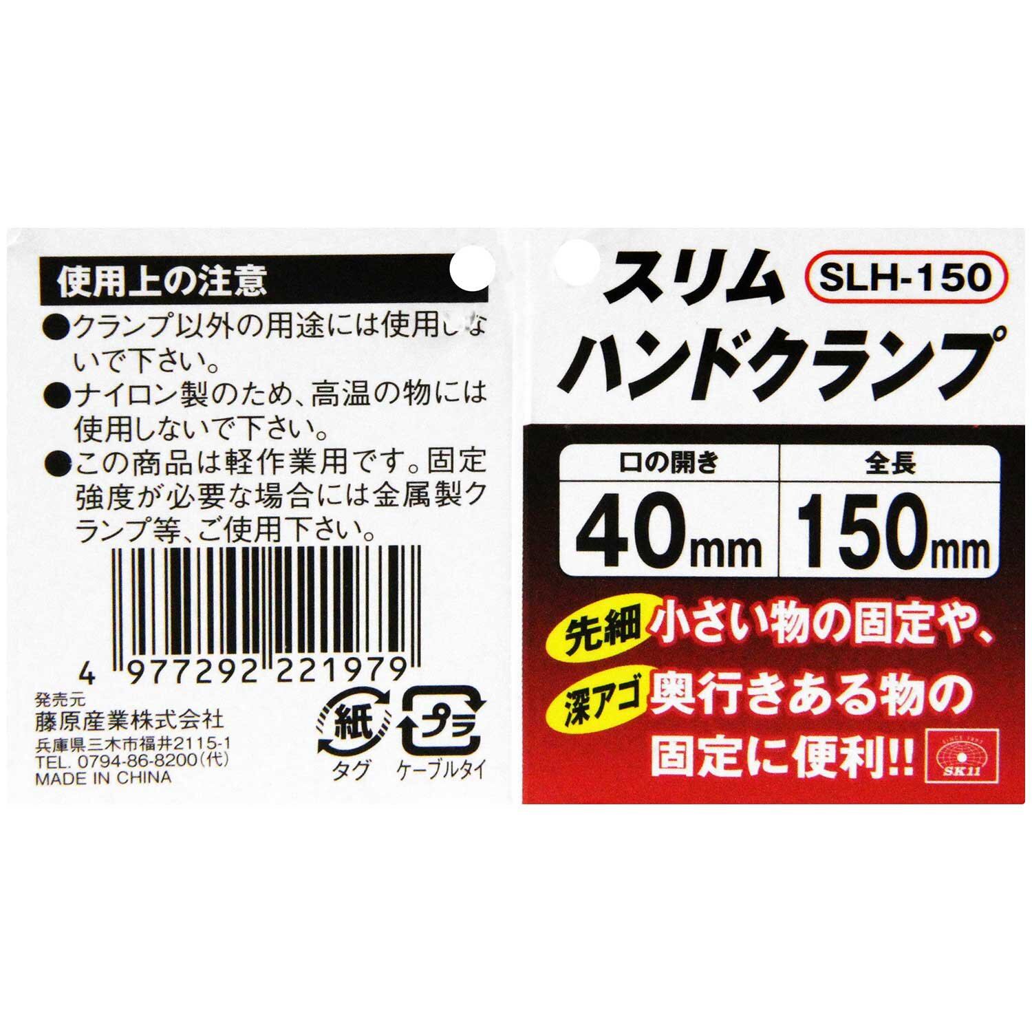 【大特価商品】SK11(エスケー11) スリムハンドクランプ 全長150mm 開き40×深さ約65mm SLH-150