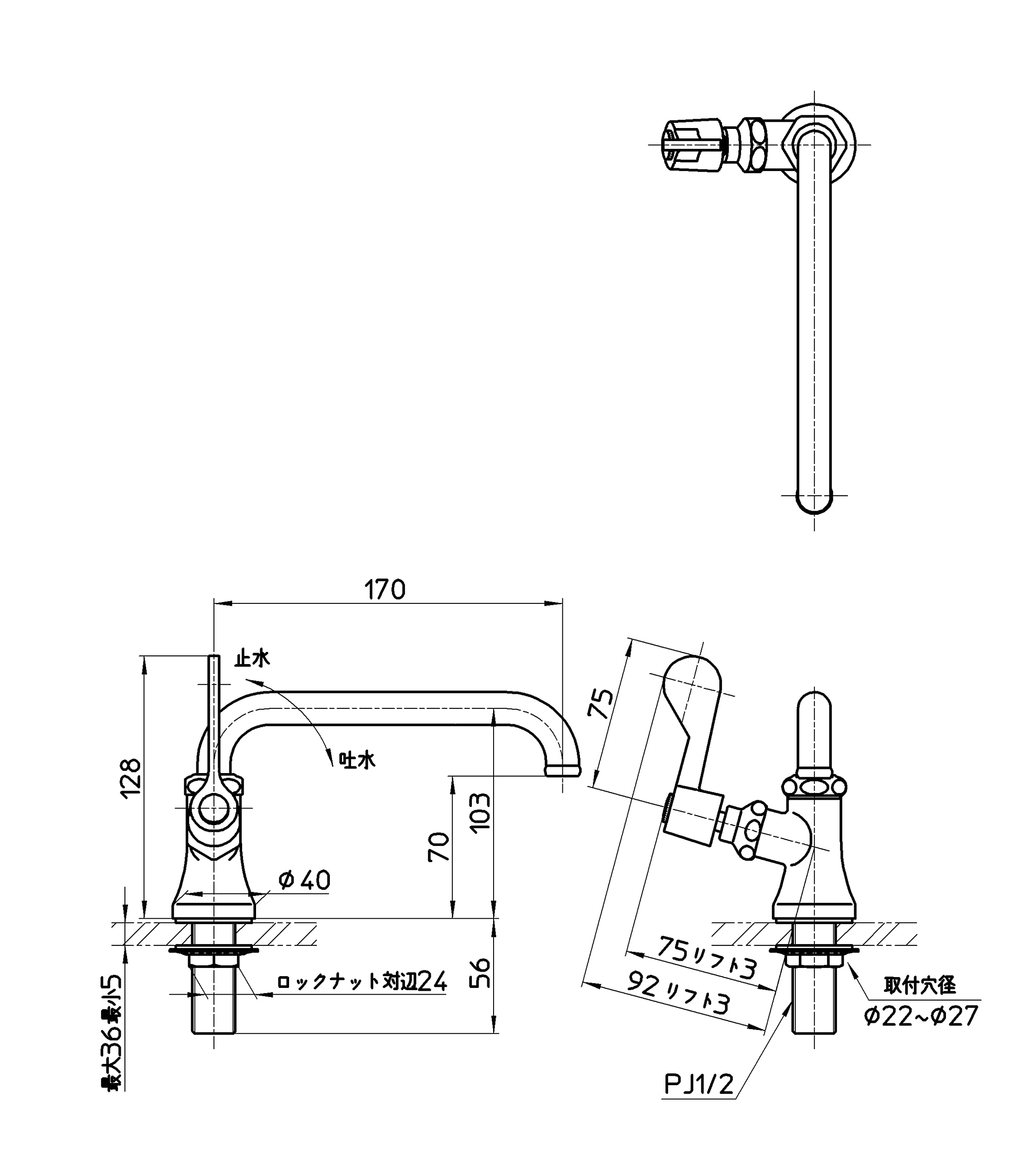 SANEI 厨房用水栓 レバーハンドル・90度開閉 内地・寒冷地共用 A5310L-13