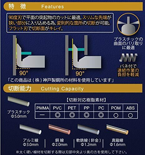 樹脂射出成型品のゲートカット、DIY、ホビー、クラフトの線材切断、プラスチックの曲面のバリ取りに。