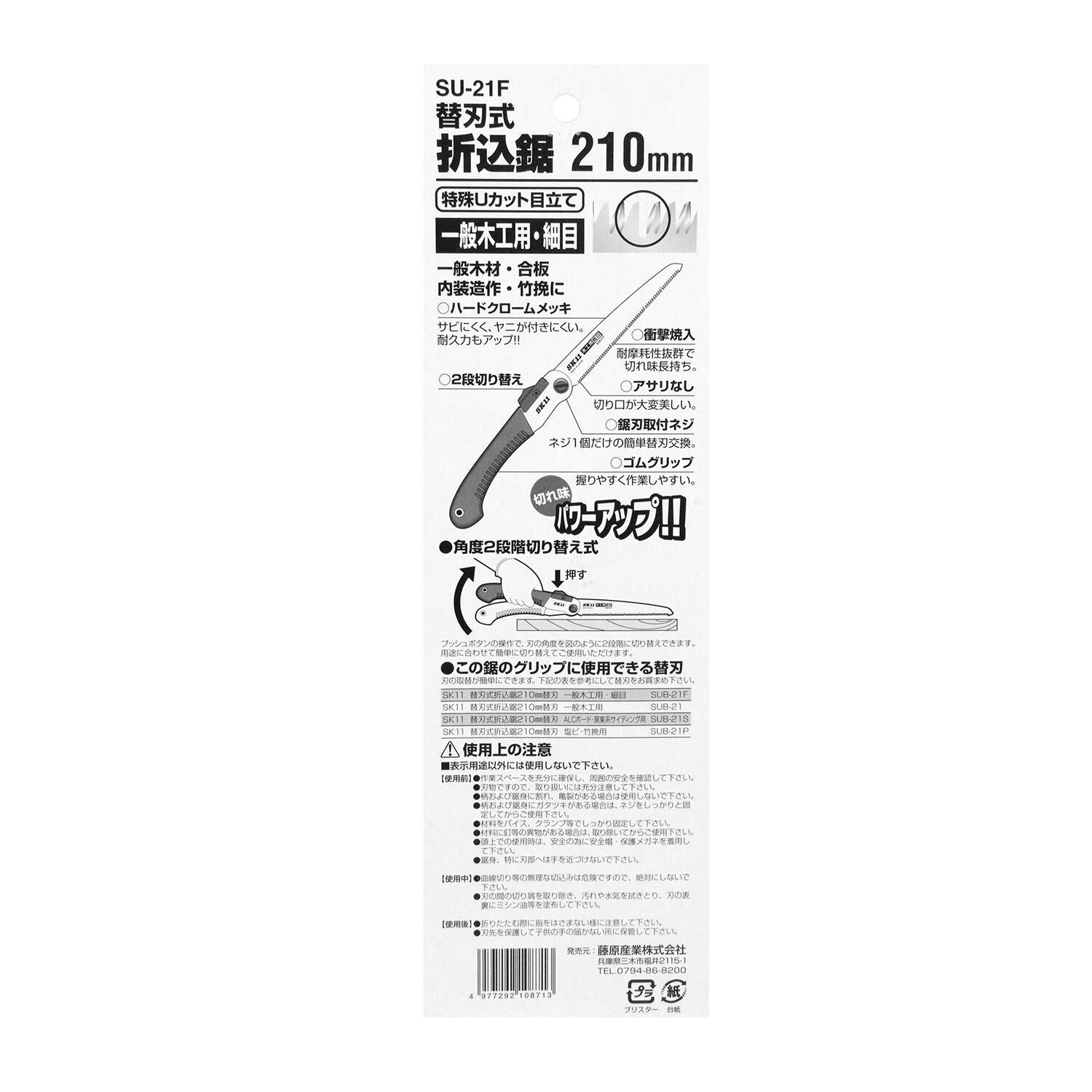 SK11(エスケー11) 替刃式折込鋸 一般木材・合板用 細目 210mm SU-21F