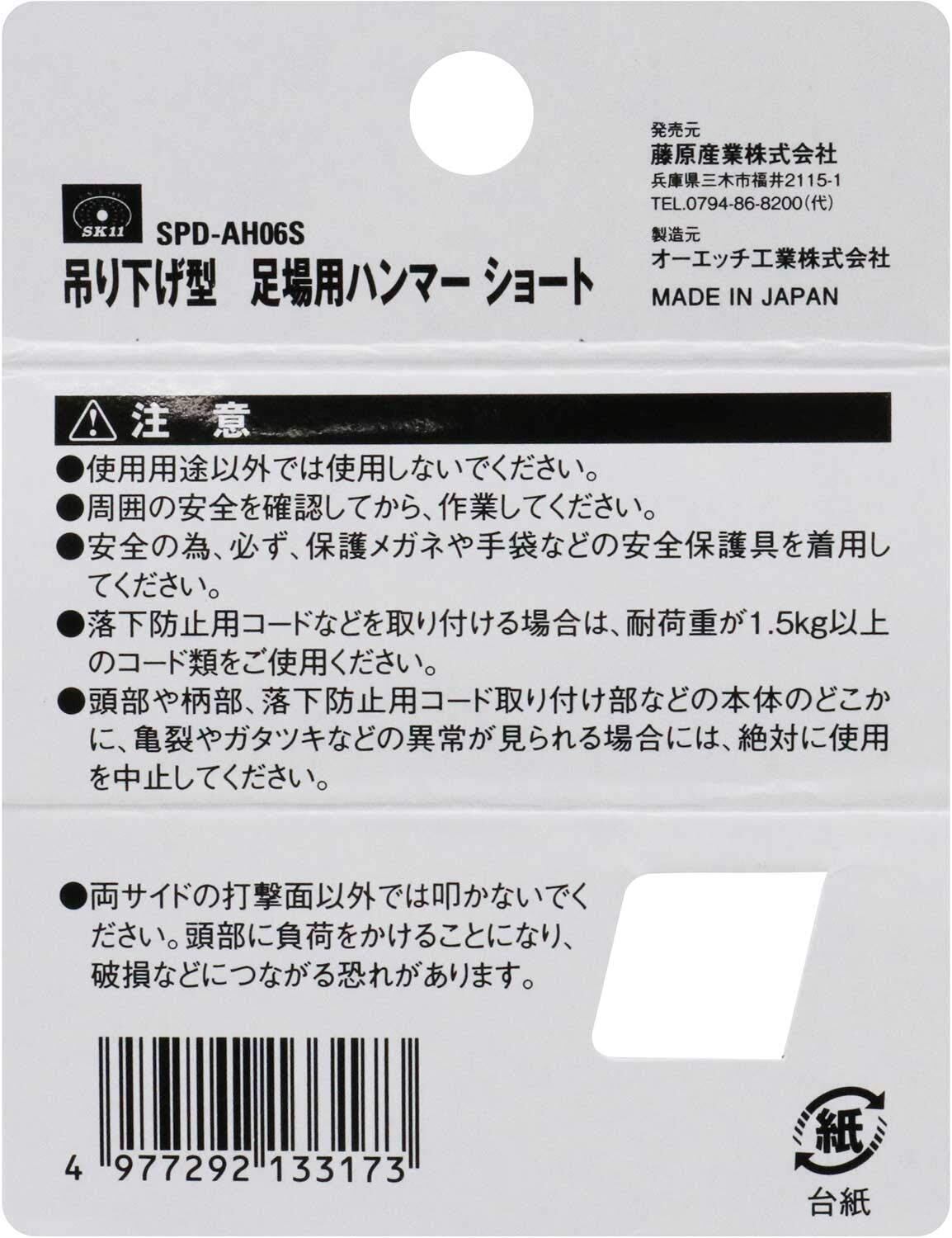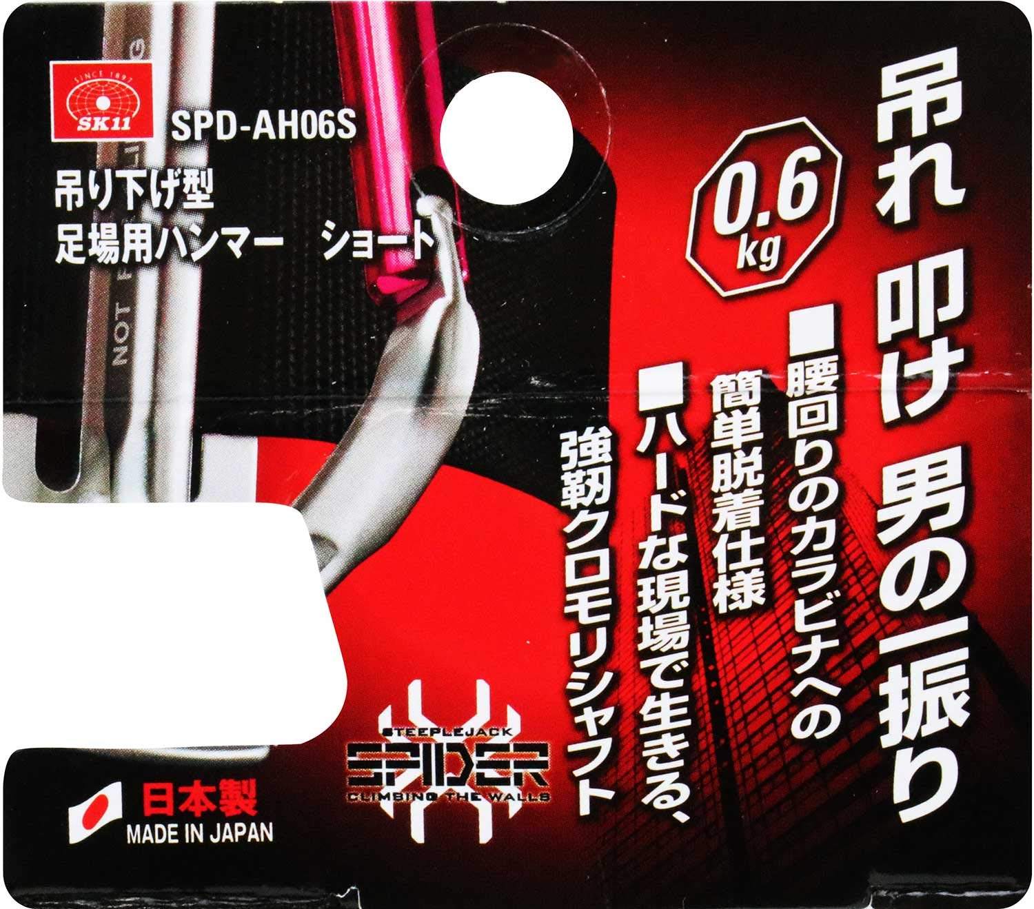 SK11(エスケー11) SPIDER 足場用ハンマー 0.6kg ショート柄 SPD-AH06S