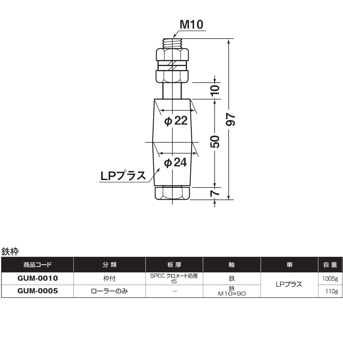 ヨコヅナ ガイドローラー 鉄枠 ローラーのみ 耐ナイロン - GUM-0005