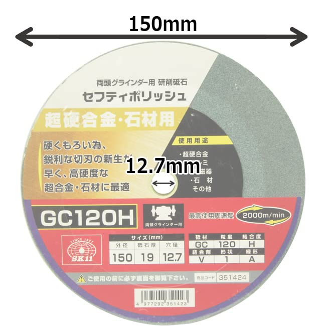 SK11(エスケー11) 両頭グラインダー用 研磨砥石 セフティポリッシュ B 超硬合金・石材用 150×19mmGC120H