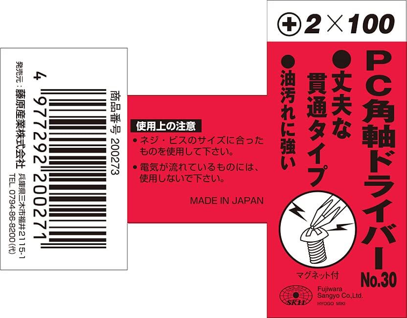 SK11(エスケー11) PC角軸ドライバー No.30P +2×100MM
