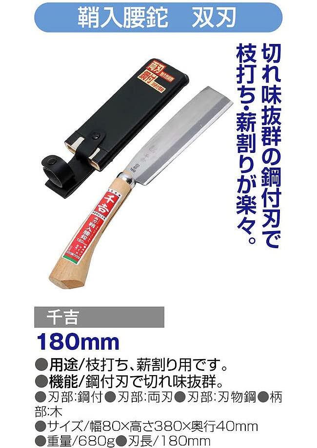 【限定特価】千吉 鞘入腰鉈 双刃(両刃) 全長380mm(刃部180mm) 日本製