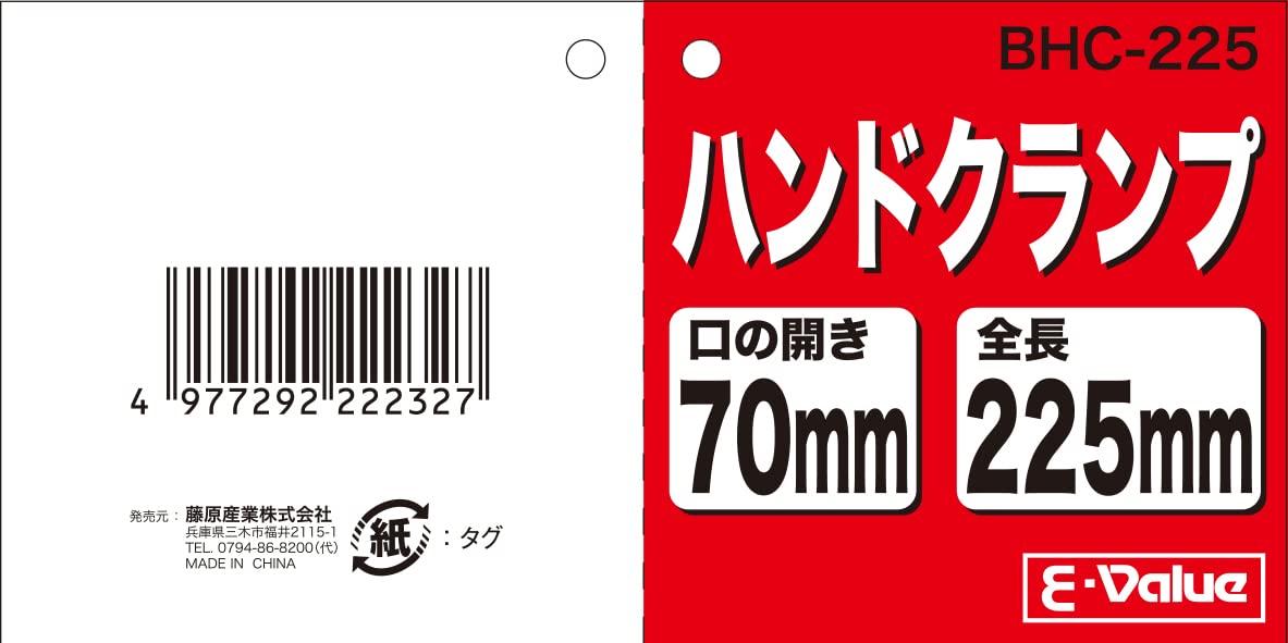 イーバリュー(E-Value) 金属製 ハンドクランプ 全長225mm 口の開き70mm BHC-225