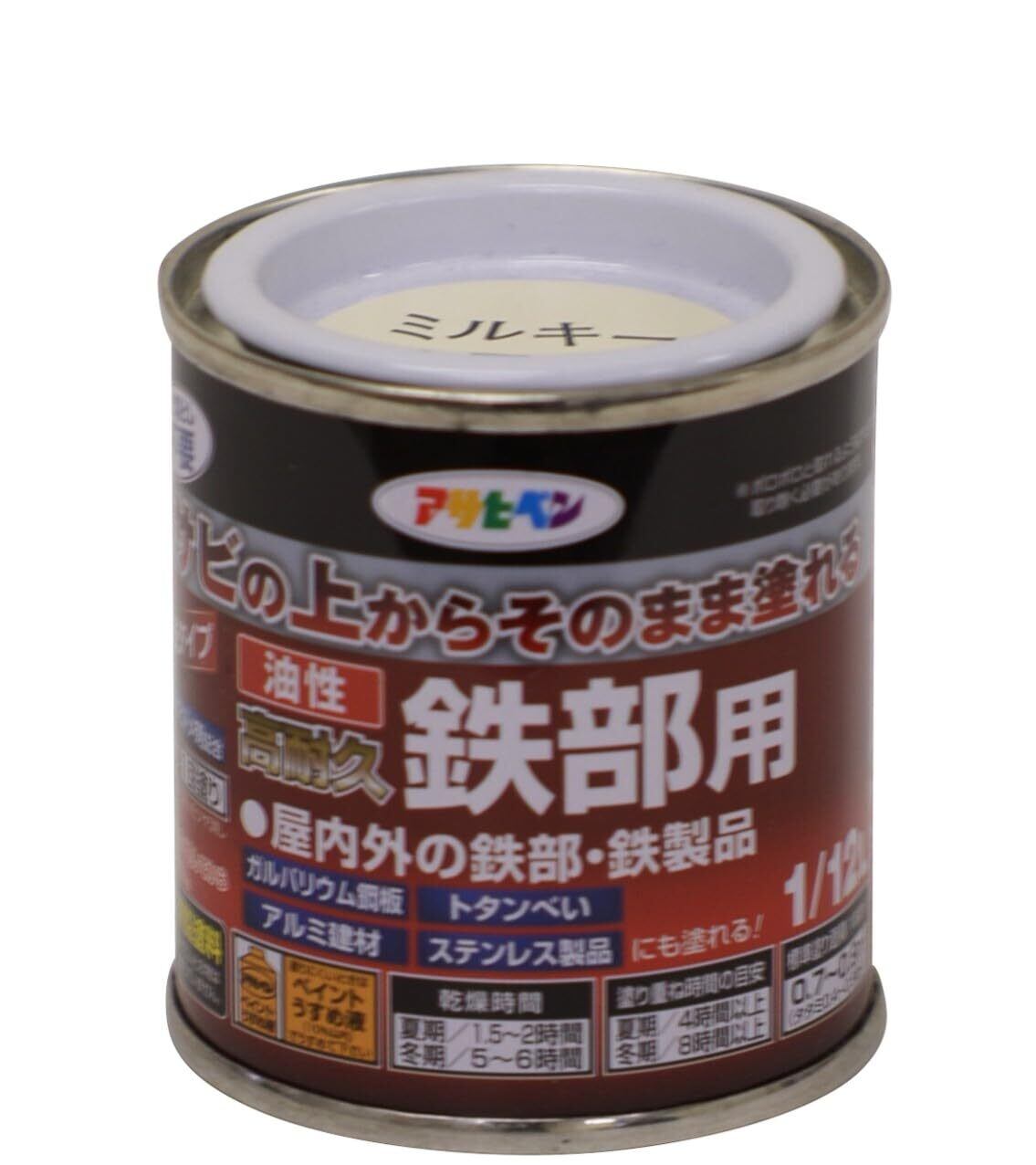 アサヒペン 塗料 ペンキ 油性高耐久鉄部用 1/12L ミルキーホワイト 油性 サビの上からそのまま塗れる ツヤあり 1回塗り 高密着性 耐候性 日本製