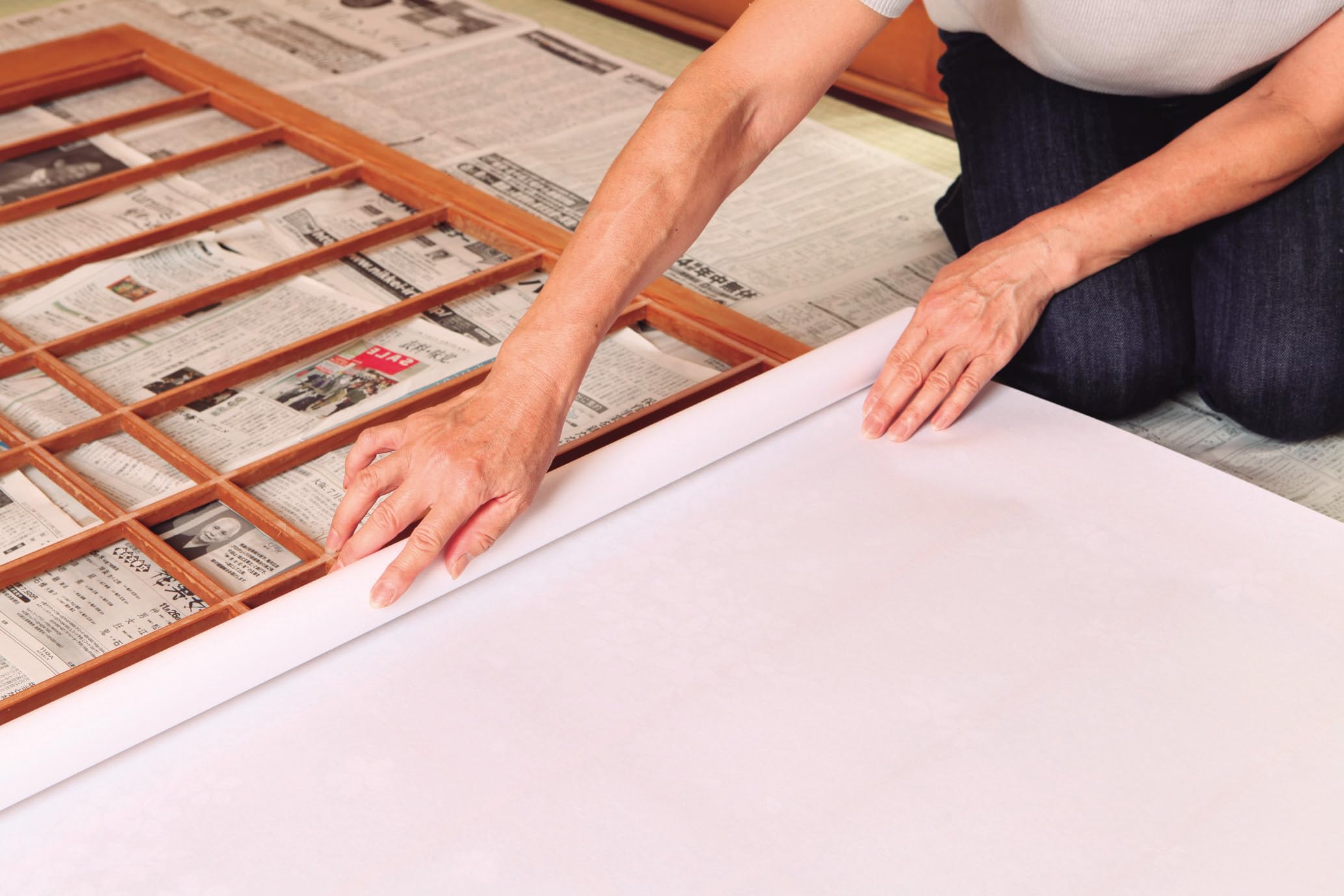 ●障子枠がケバ立っていたり、ザラザラしていると、はがれてくることがあります。必ずサンドペーパーなどで平らにしてから貼ってください。