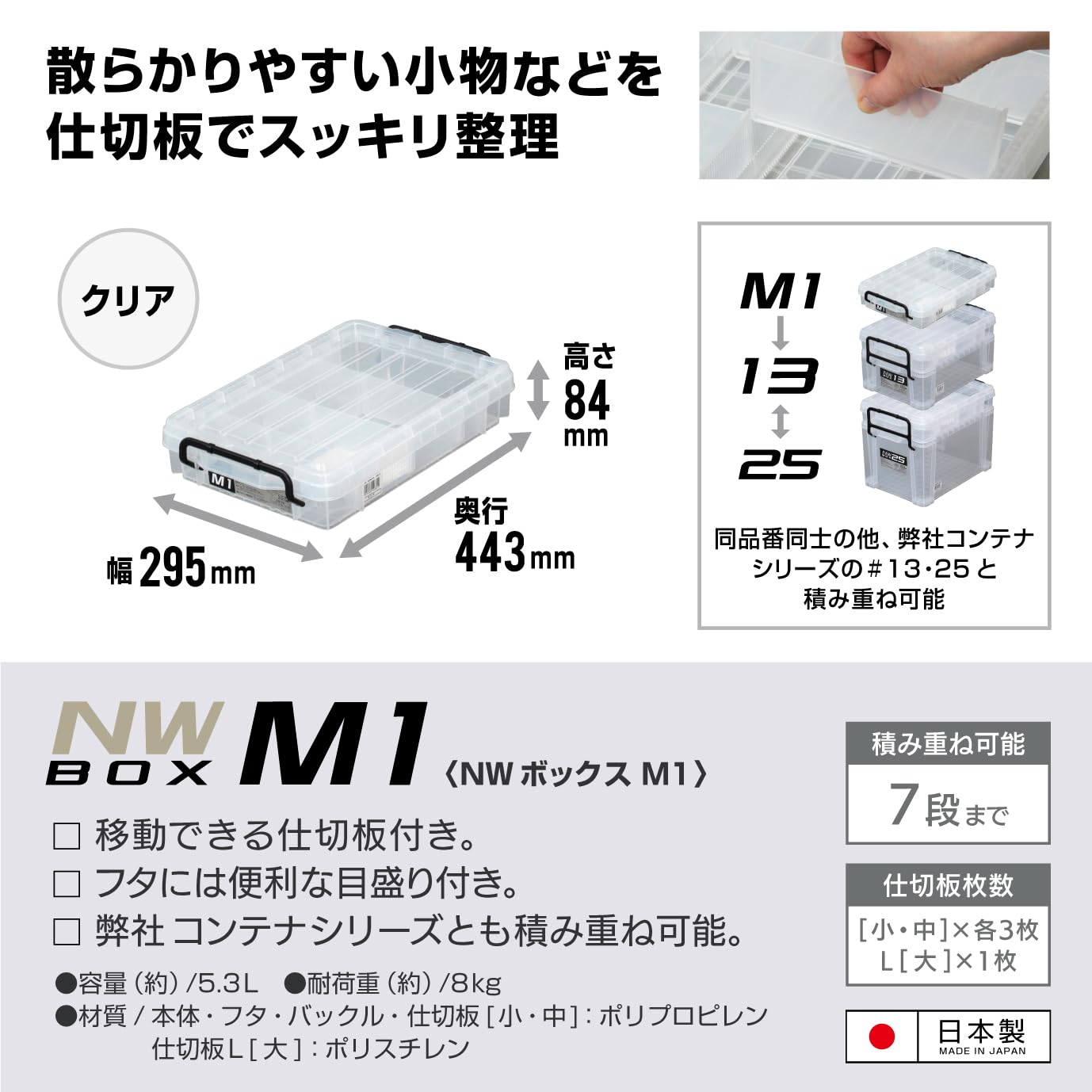 JEJアステージ 収納ボックス 日本製 小物収納 工具収納 仕切版付き NWボックスM-1 防災 [幅29.5×奥行44×高さ8.4cm]