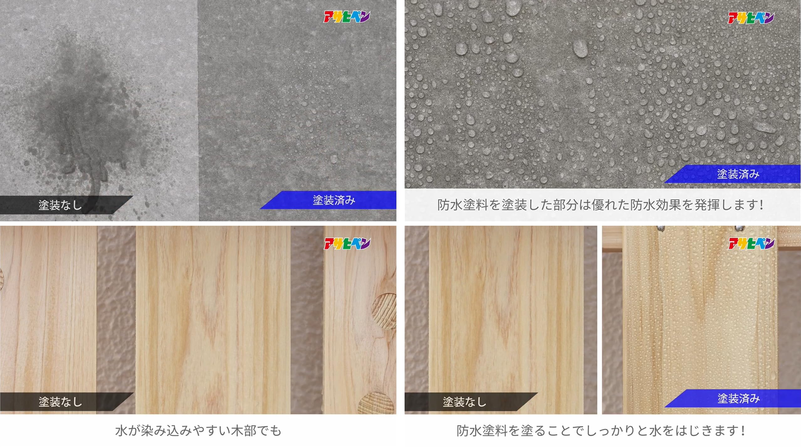 すぐれた防水性を発揮し、塗った面 の汚れも防止します。
