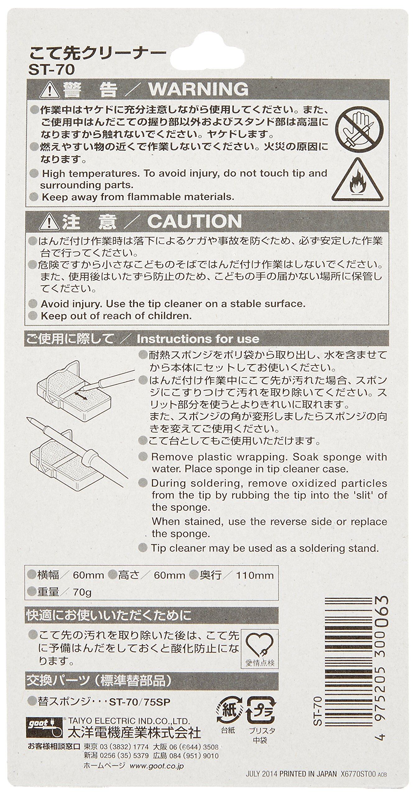 【最新特価】太洋電機産業(goot) コンパクトこて先クリーナー ST-70