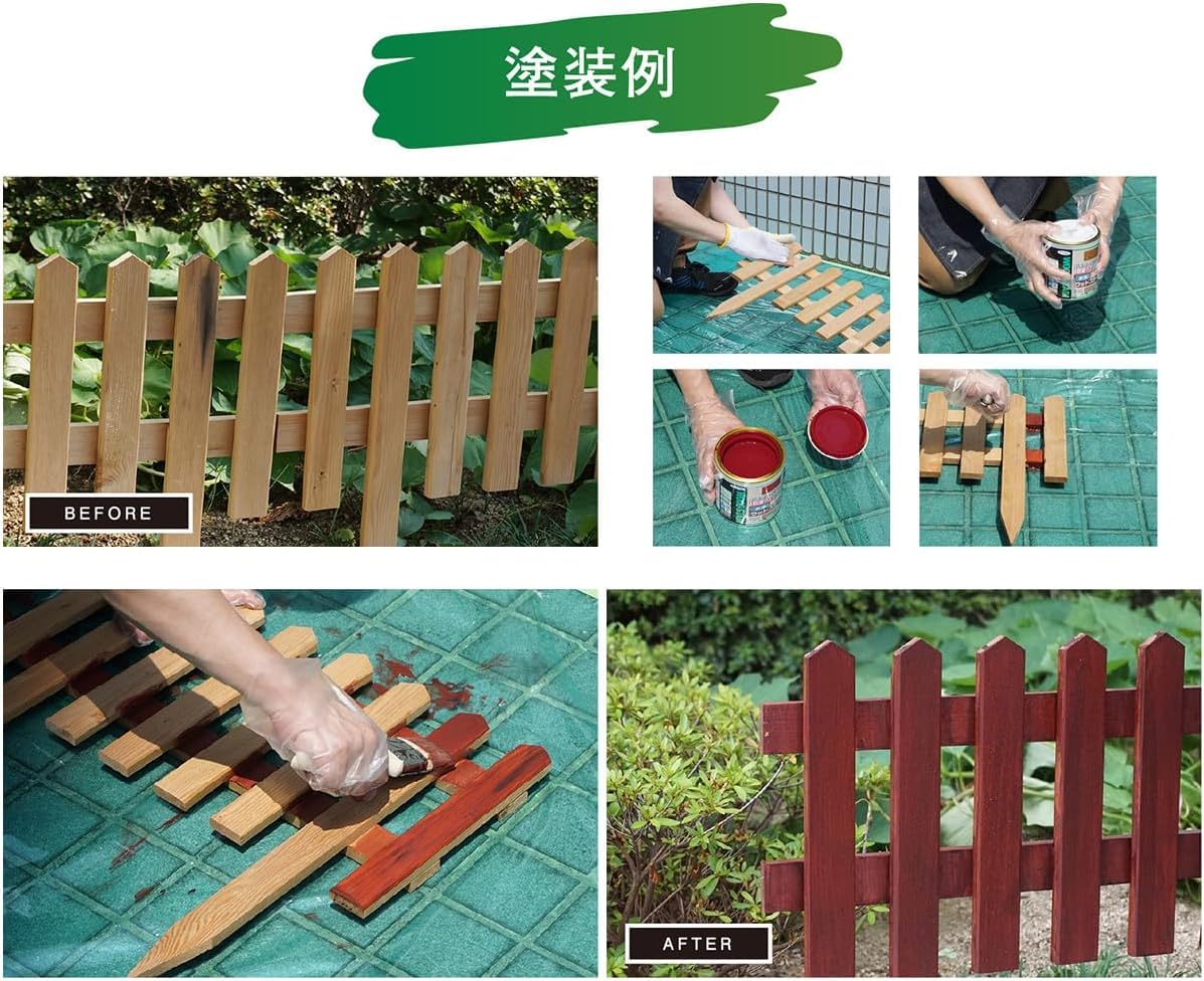 用途:(屋内外区分:屋内外用)ラティス・トレリス・プランター・ウッドデッキなどのガーデン用木製品家具・窓枠・幅木・ウッドクラフト・工作品などのインテリア木部・木製品※古い木材や旧塗膜のある木材の場合は、必ず下地処理後に塗装して下さい。常時水のかかるところやいつも湿っているところ、また屋内の床面には適しません。