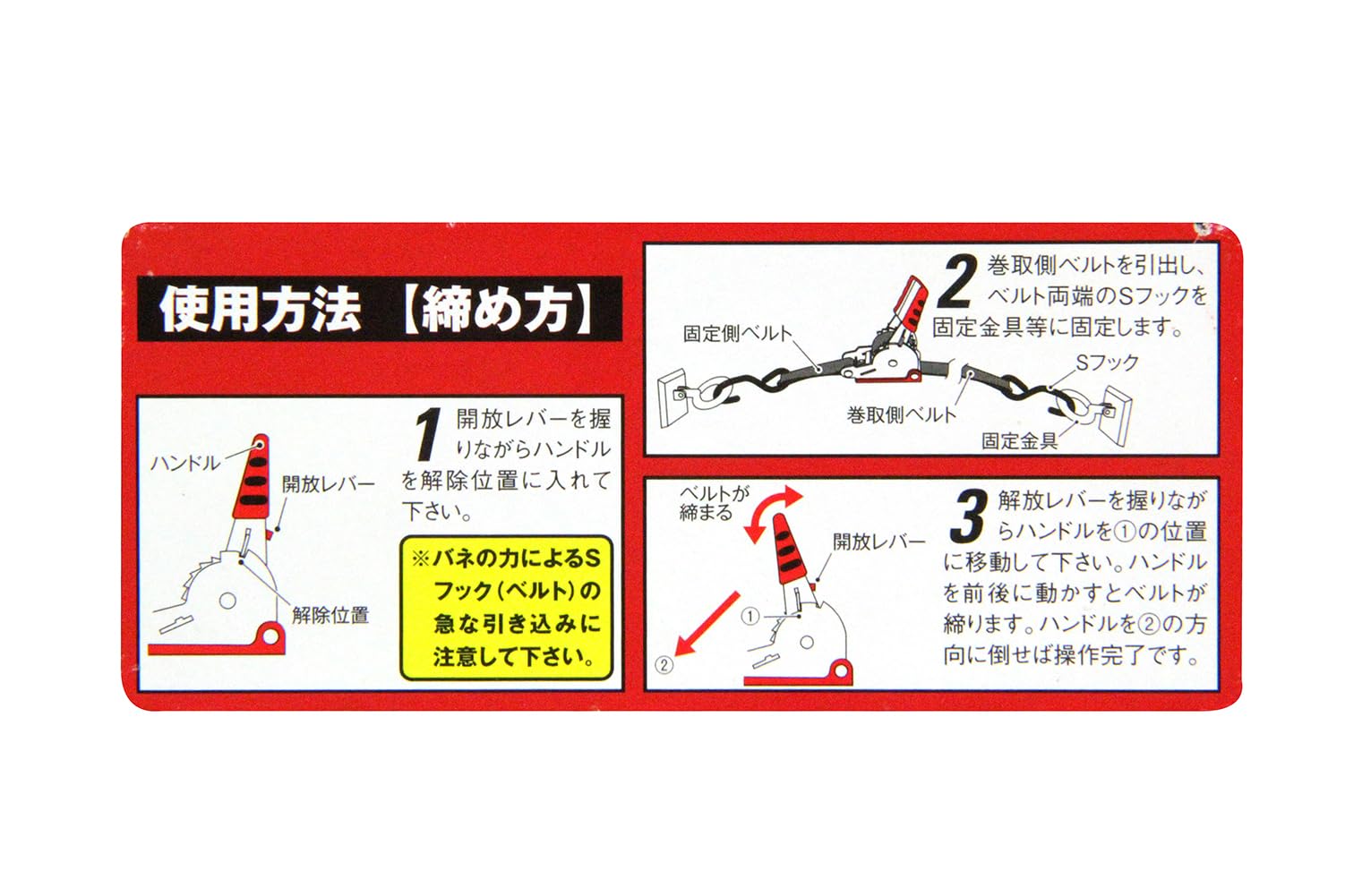 バックルの種類:ラチェットバックル、端末の仕様:オープンフック