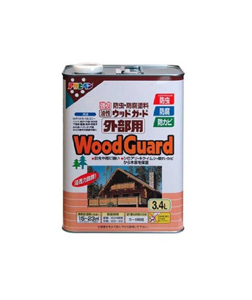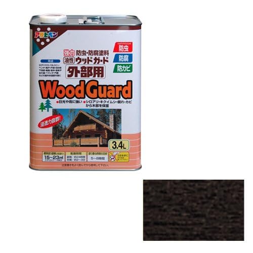 【限定セール】アサヒペン 塗料 ペンキ 油性 ウッドガード 外部用 3.4L ブラック 04 油性 木部用 屋外木部の保護 艶消し ステイン仕上げ 耐光性 耐水性 防カビ 防虫 防腐 日本製