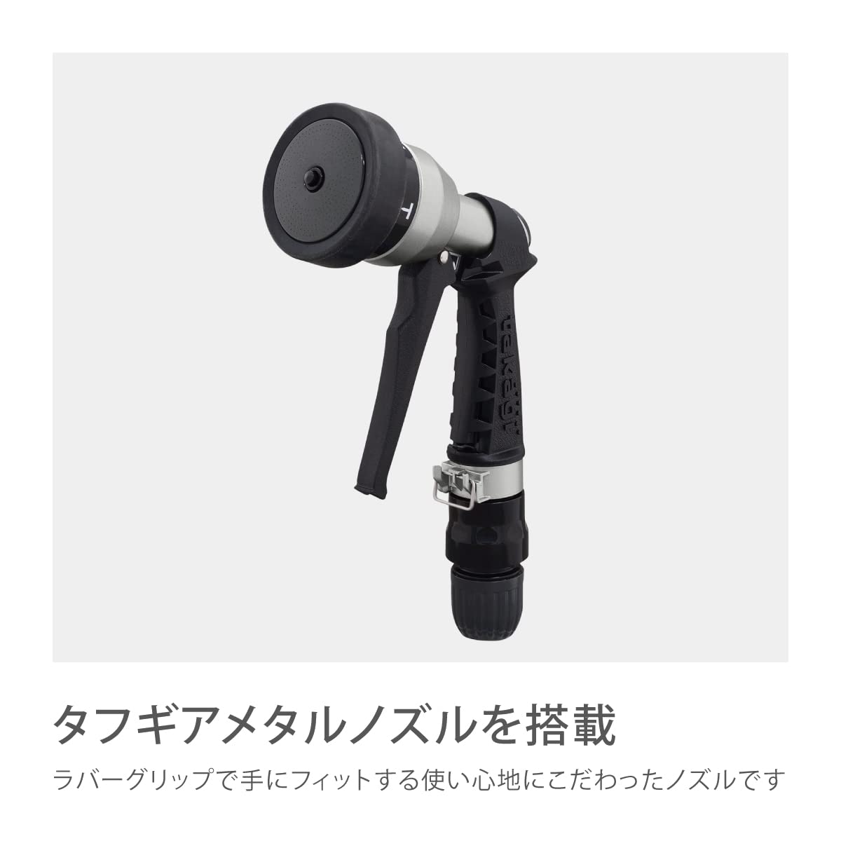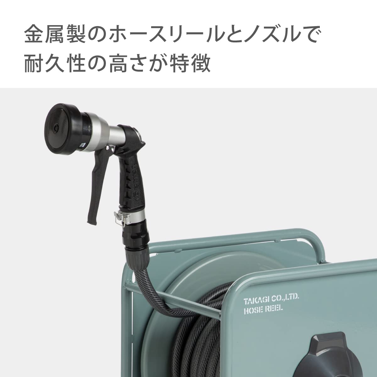 ●金属製のボディで高い耐久性です。●ハンドル位置を50cm高くできる延長脚付なので、巻き取り時にかがむ必要がありません。●工具不要のレバーで蛇口に取り付けることができます。●ねじがないので蛇口に傷がつきません。●ねじれに強いツイスターホースを採用しています。●一般家庭での屋外散水用。●ホースの巻き取りをしゃがまず使用したい方に。●お庭に馴染むお洒落なカラーのホースを使用したい方に。