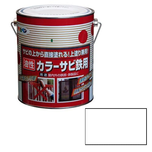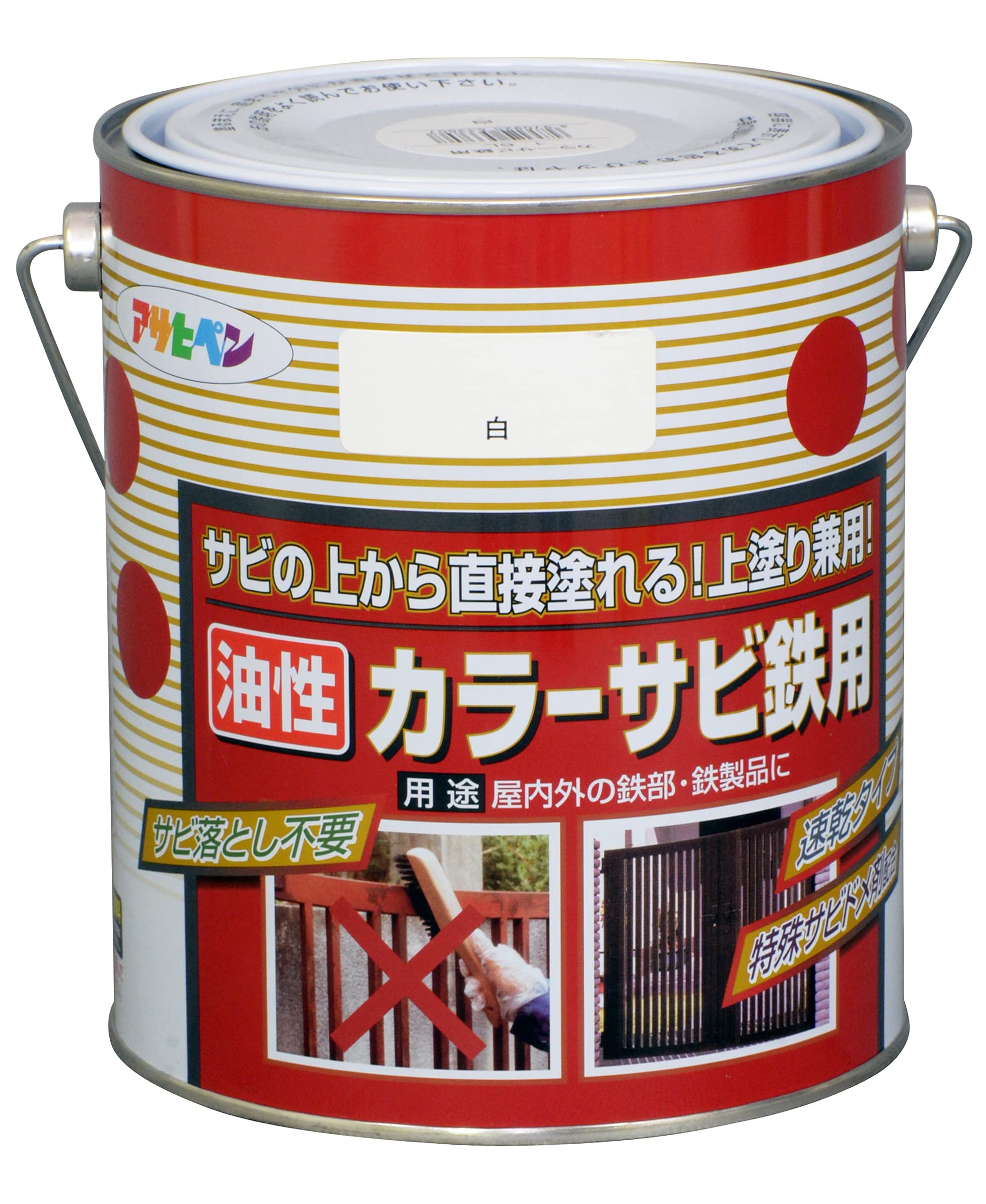 アサヒペン 塗料 ペンキ カラーサビ鉄用 1.6L 白 油性 サビの上から直接塗れる 上塗り兼用 ツヤあり 1回塗り 速乾 特殊防錆剤配合 非危険物(消防法上) 日本製