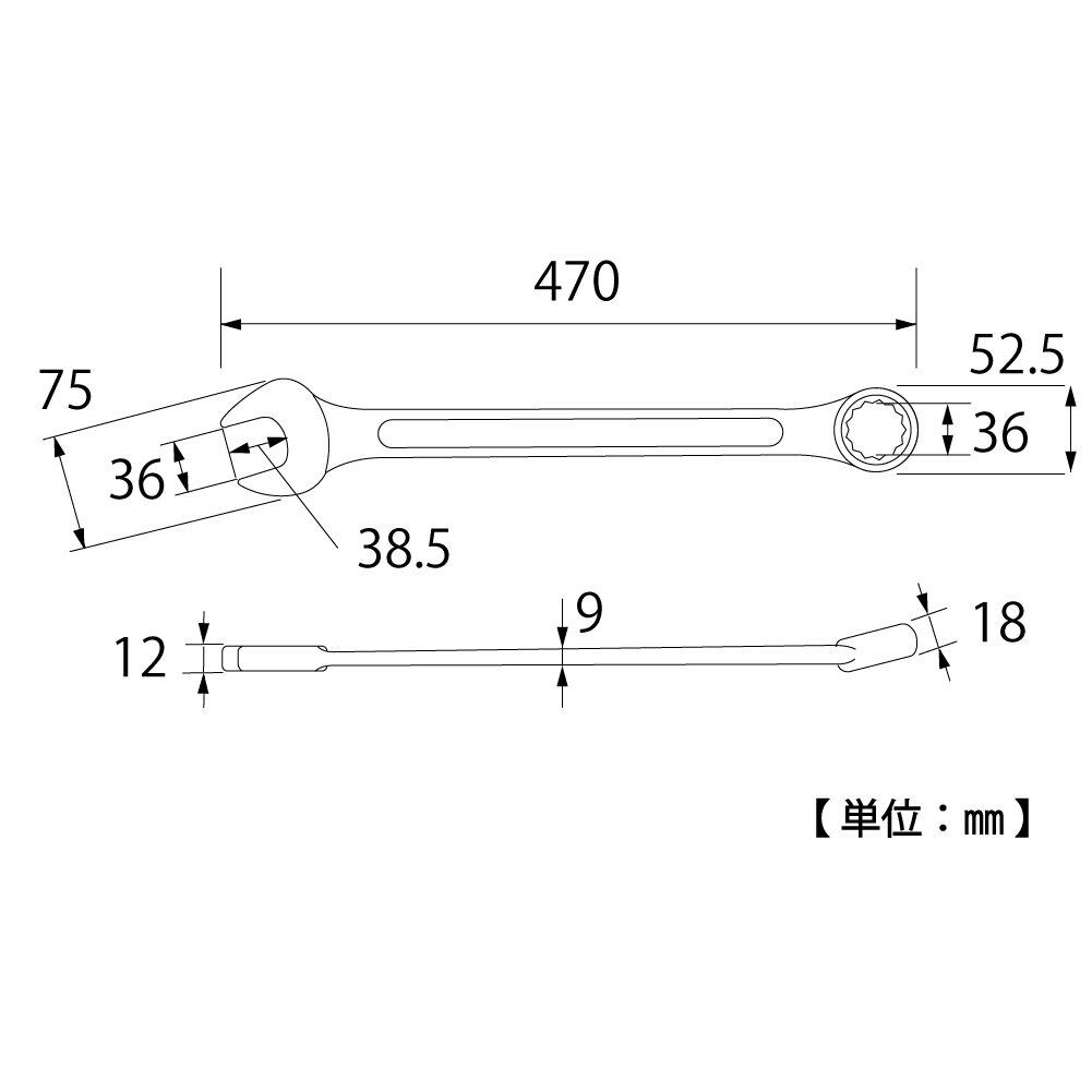 トップ (TOP) コンビネーションレンチ 対辺36㎜ 12角 サーフェイス 鍛造 国産 メガネ部15° CW-36 燕三条 日本製