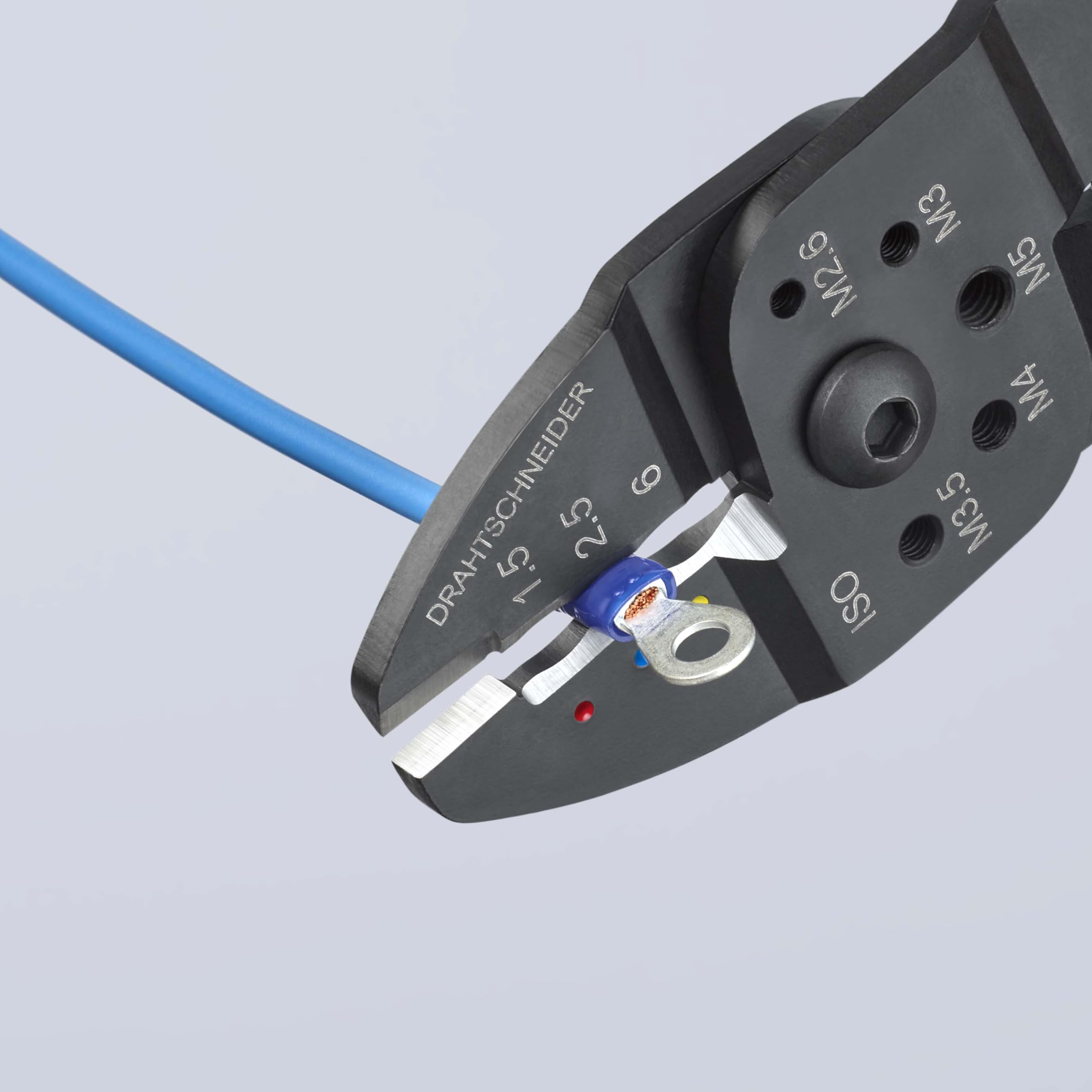 ケーブルの切断・ワイヤーのストリッピング(皮むき)・絶縁端子・オープンバレル端子(6.3mm)の圧着が行えます。