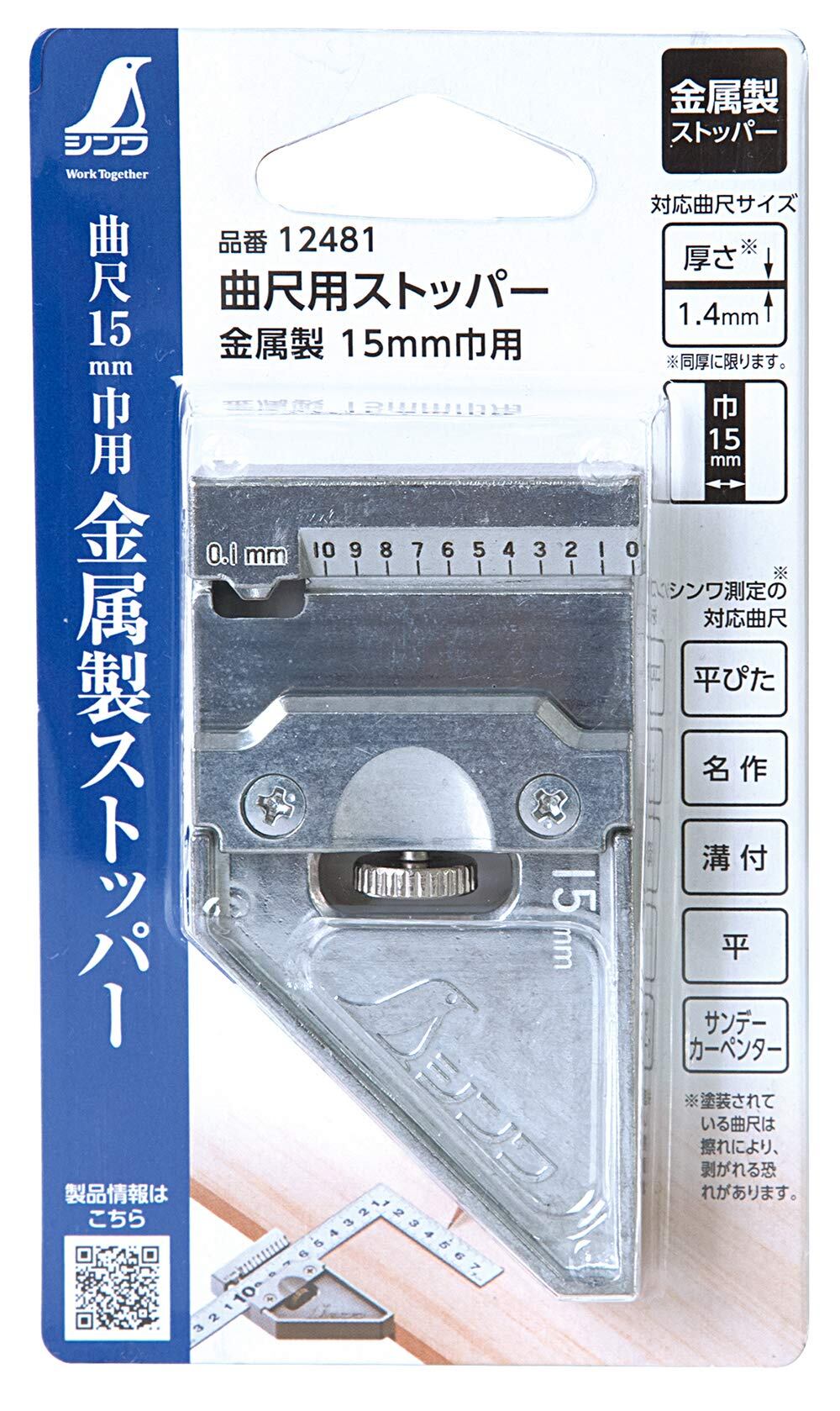シンワ測定(Shinwa Sokutei) 曲尺用ストッパー 金属製 15㎜巾用 12481