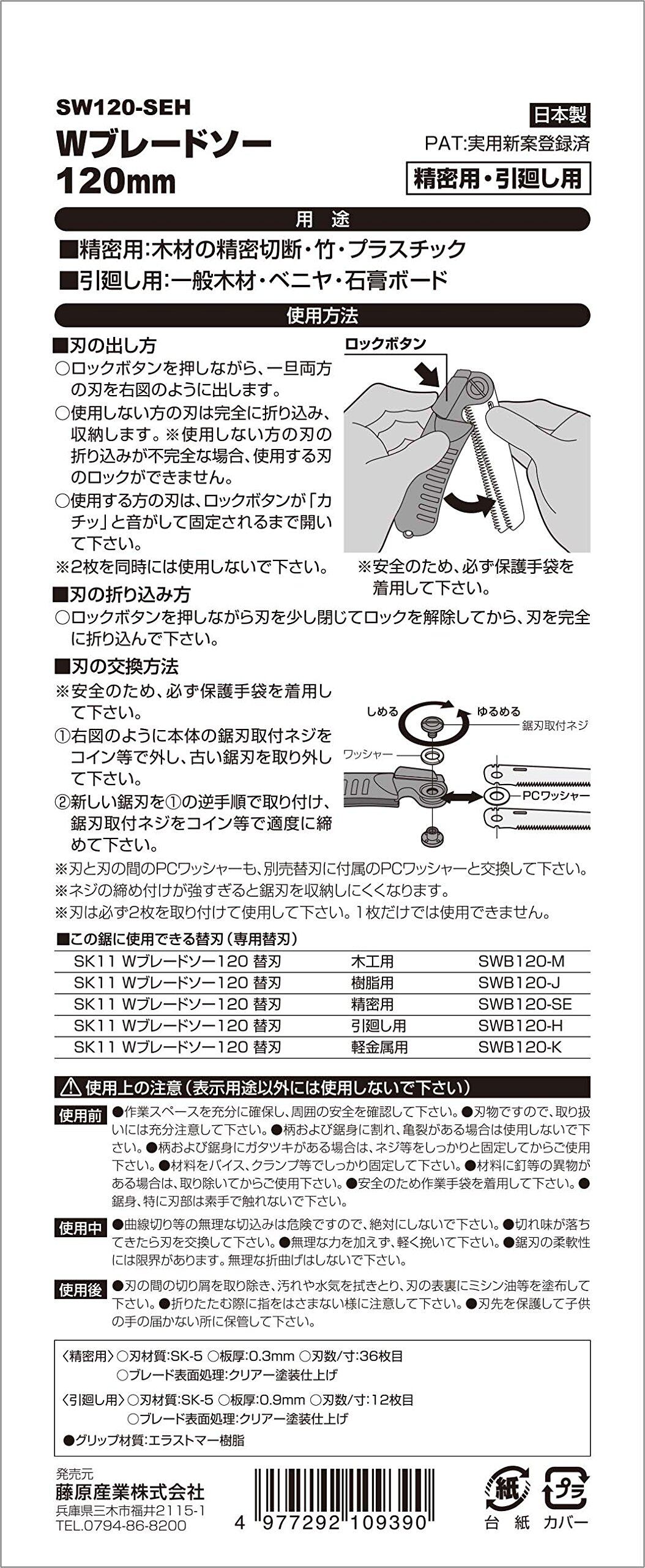 SK11(エスケー11) 替刃式 折込鋸 ダブルブレードソー 精密/挽廻し用 SW120-SEH