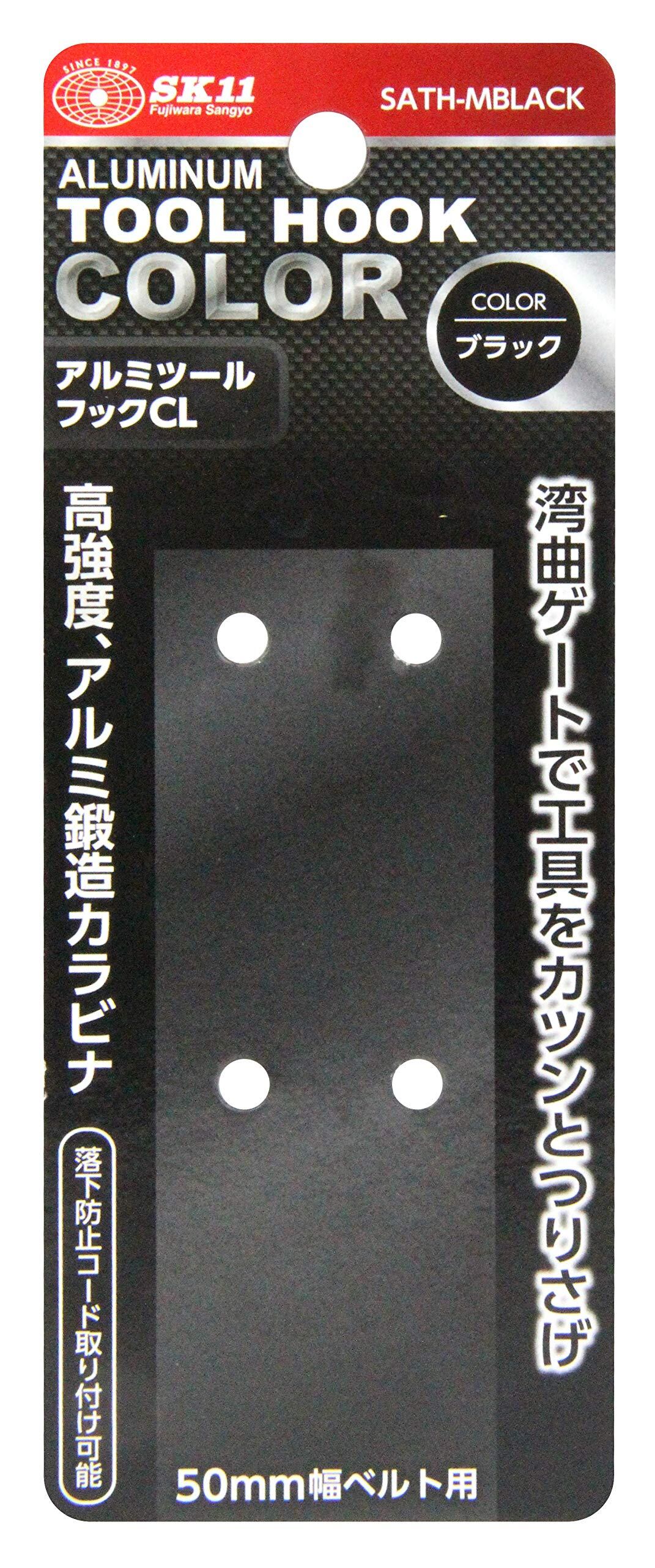 SK11(エスケー11) アルミツールフック ベルト幅50mm用 SATH-MBLACK 耐荷重3kg ブラック 落下防止コード取付可能