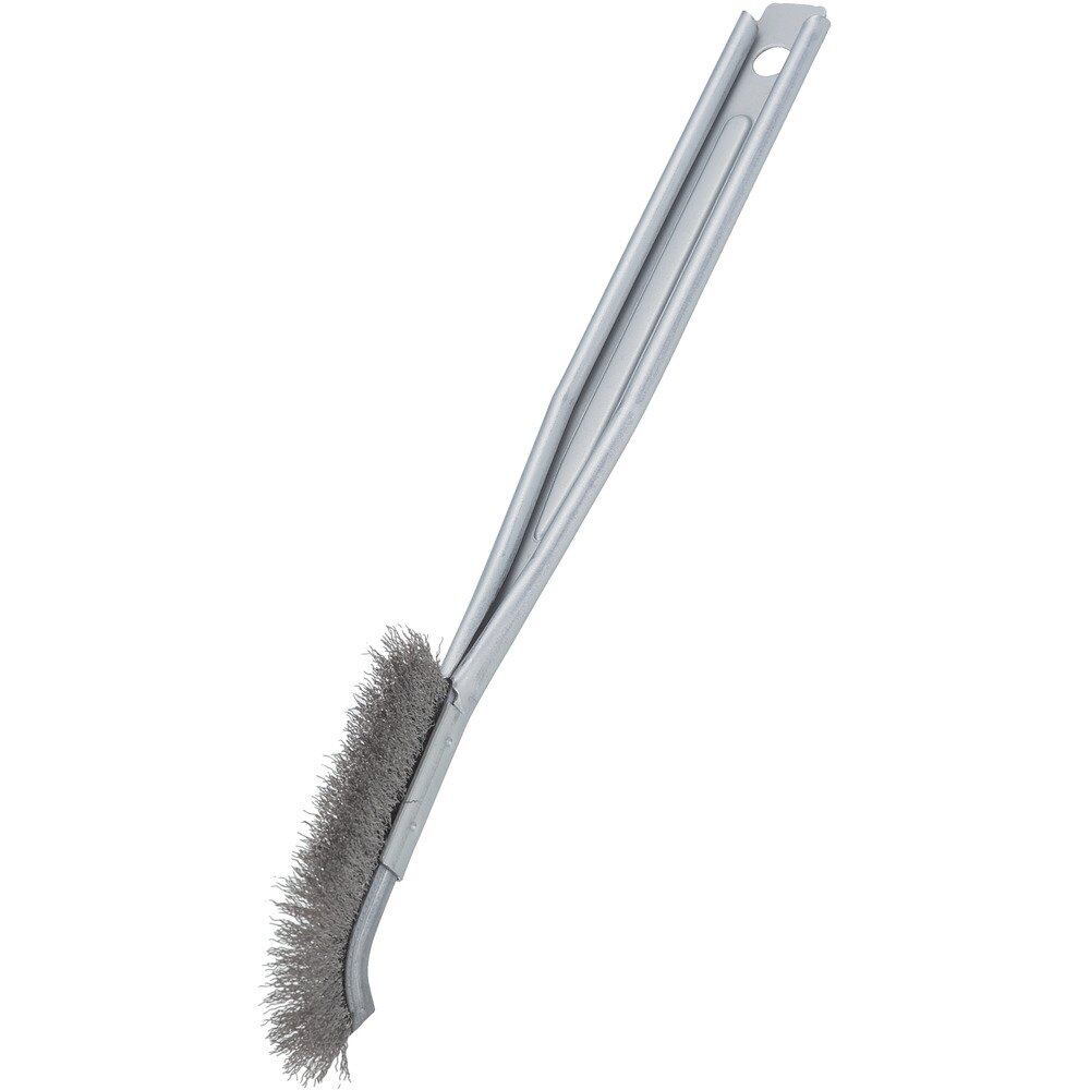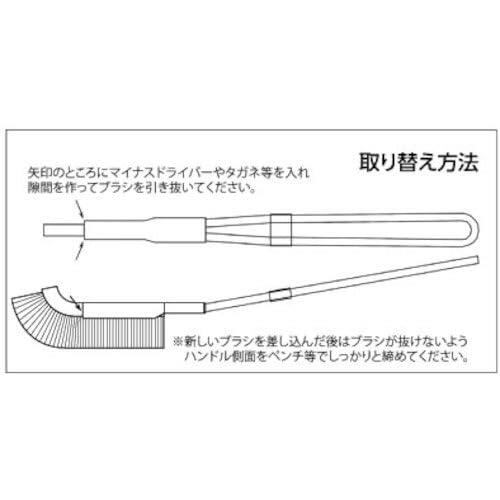 ●ブラシ先端部、J型(曲)●金属面のサビ取り、バリ取り、塗装はく離など。●手作業の範囲の、比較的、軽作業向き。●従来のチャンネルブラシに比べてハンドルが持ちやすく、長時間使用しても指が痛くなりにくいです。●ハンドル部分には環境適応物質のメッキ処理をしています。●柄の後ろの部分がヘラの形状になっているので、こびりついた汚れを落とすのに適しています。