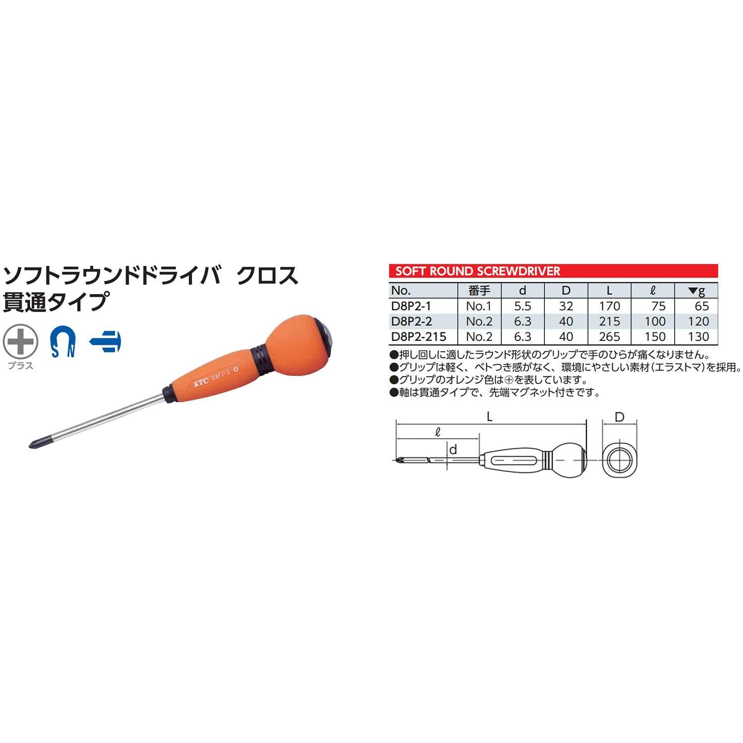 【新着商品】京都機械工具(KTC) ソフトラウンドドライバー クロス貫通タイプ D8P2-2