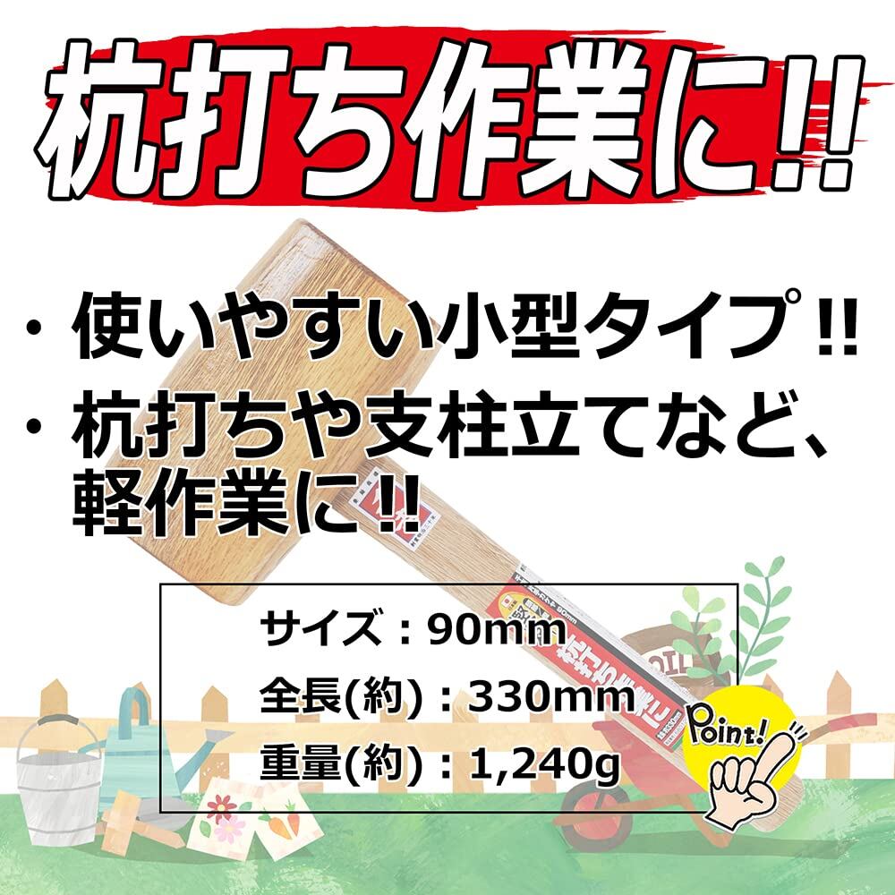 千吉 掛矢 片手カケヤ 頭径90mm 杭打ち作業用 小型タイプ 奥行8.5×高さ33.5×幅15.5cm