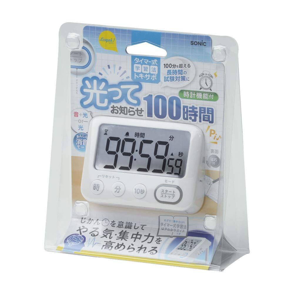 ソニック タイマー トキ・サポ 100時間 スタンド付 光ってお知らせ ホワイト LV-3288-W
